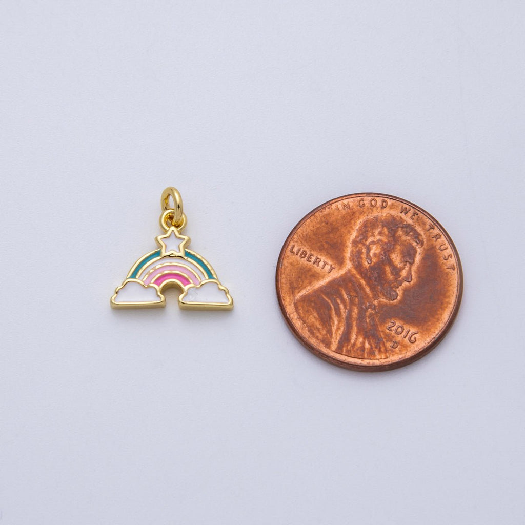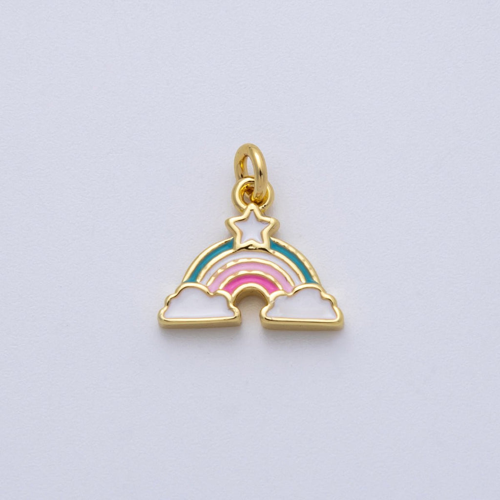 18K Gold Filled 12mm Mini Rainbow Pastel and Star Dreamy Sky Enamel Charm | CHARMS-00144