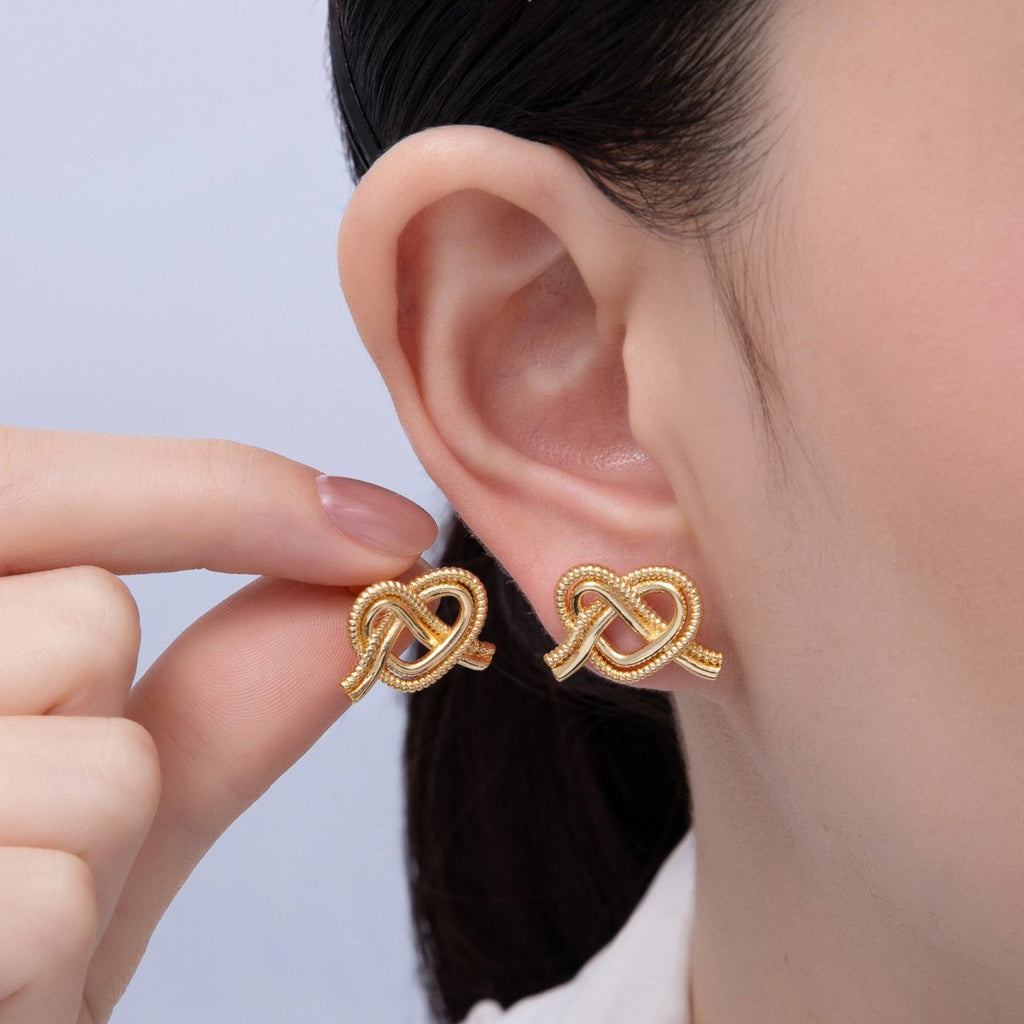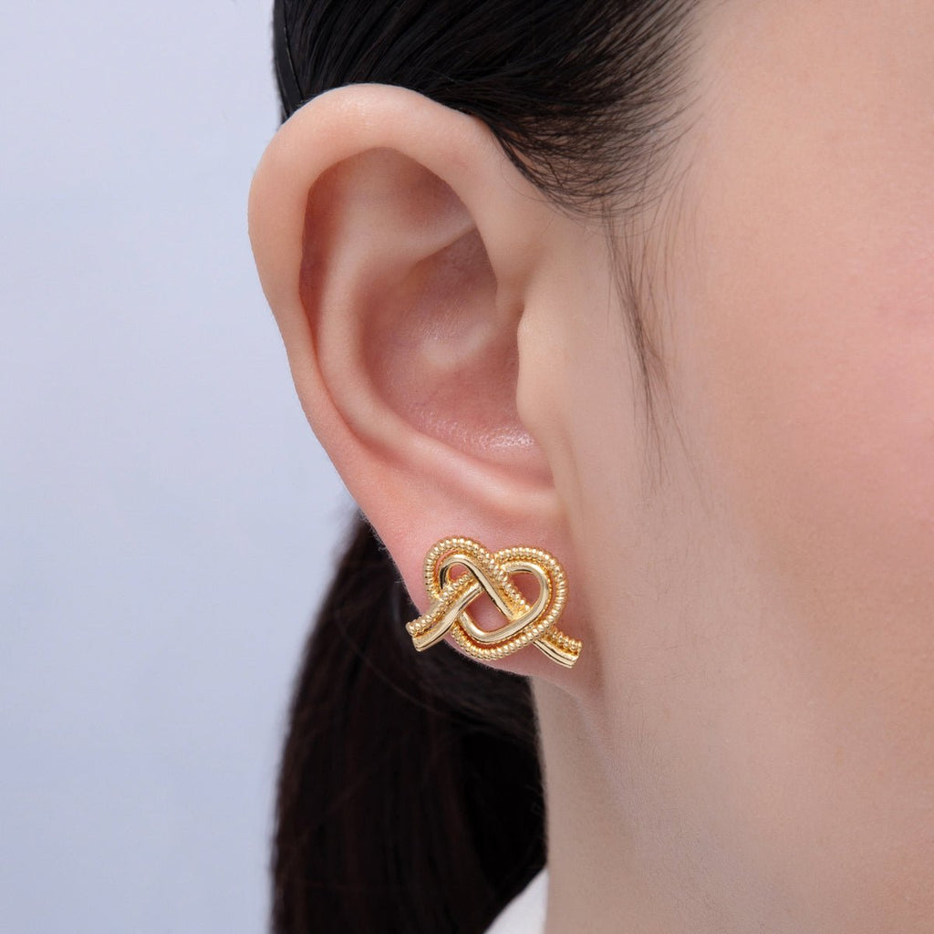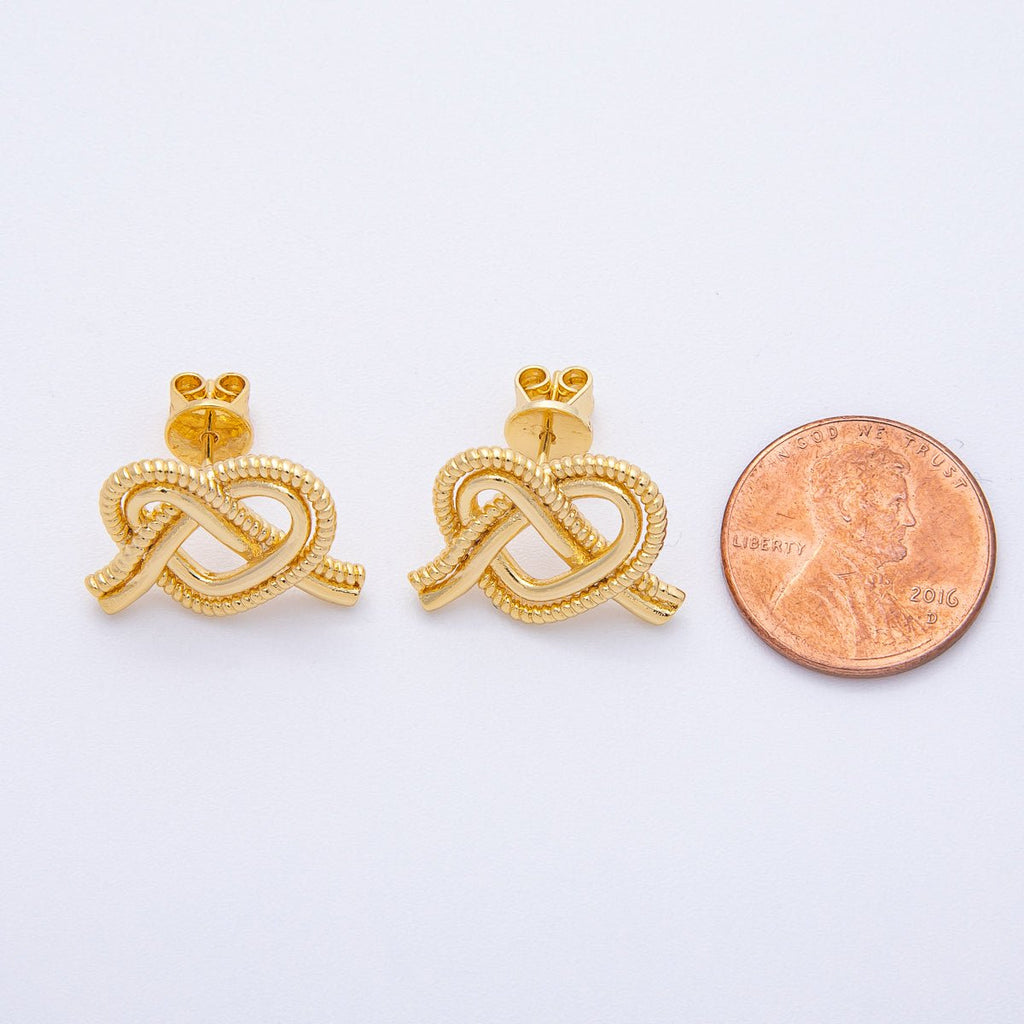 18K Gold Filled 13mm Ribbed Croissant Pretzel Pastry Stud Earrings | T002