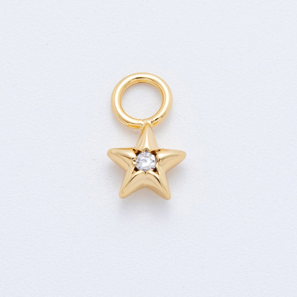 18K Gold Filled Round CZ Celestial Mini Star Add-On Drop Earring Charm | C393