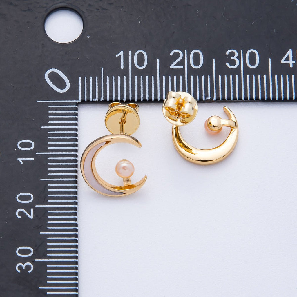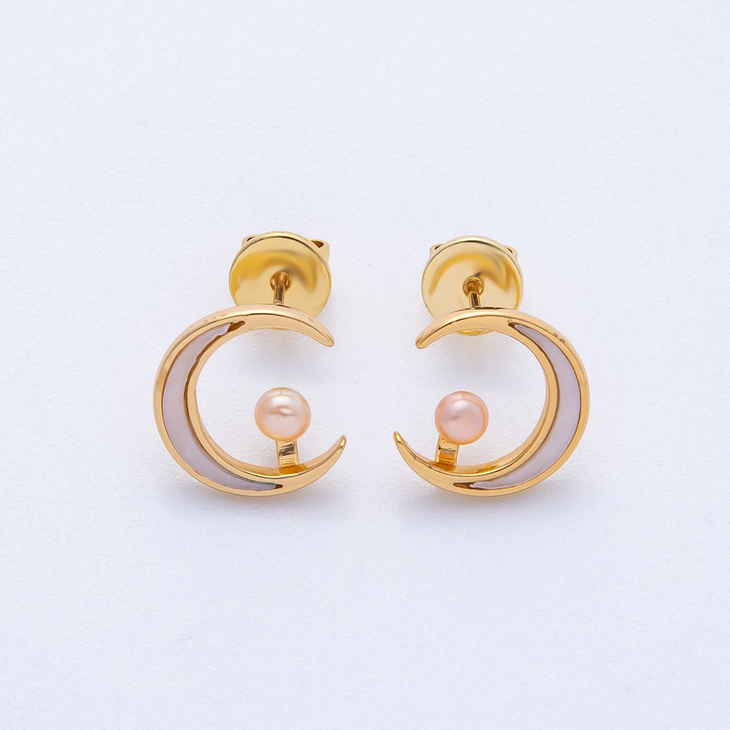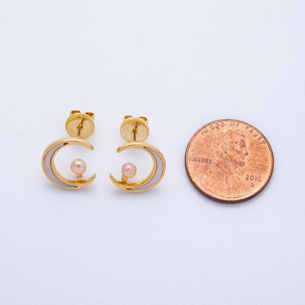 18K Gold Filled 14mm Celestial Crescent Moon Shell Pearl Stud Earrings | AB1675