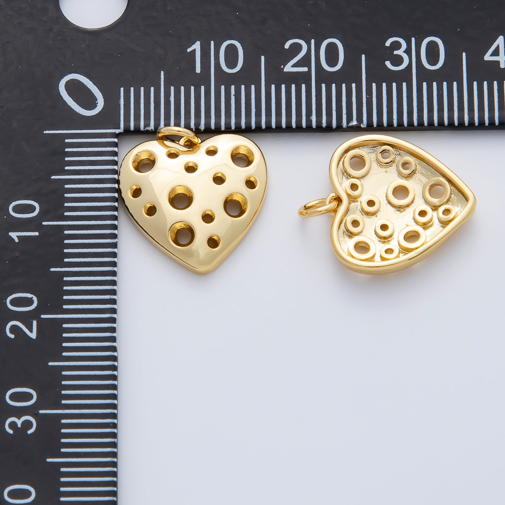 18K Gold Filled 15mm Open Dotted Cheese Heart Charm | AF1413