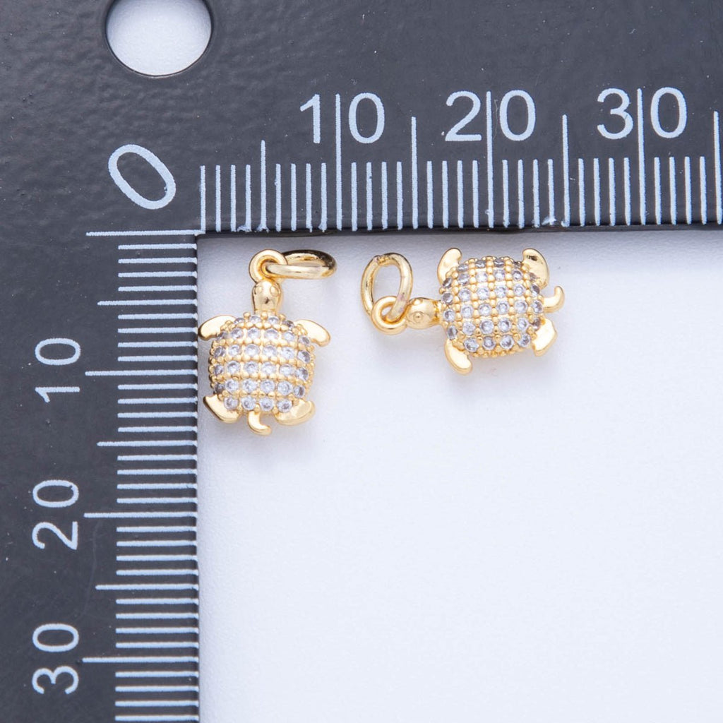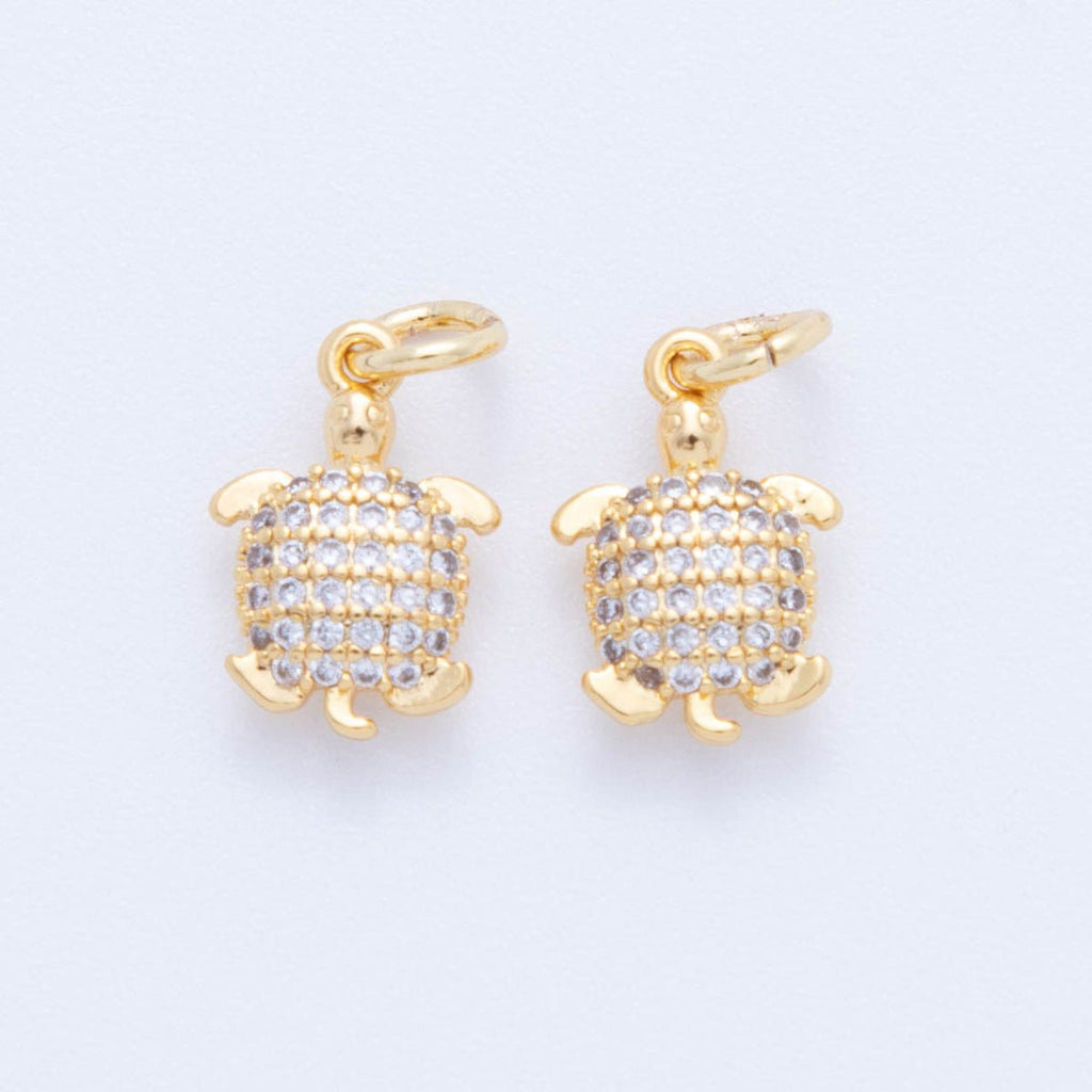 18K Gold Filled 15mm Micro Paved CZ Sea Turtle Tortoise Charm | C541