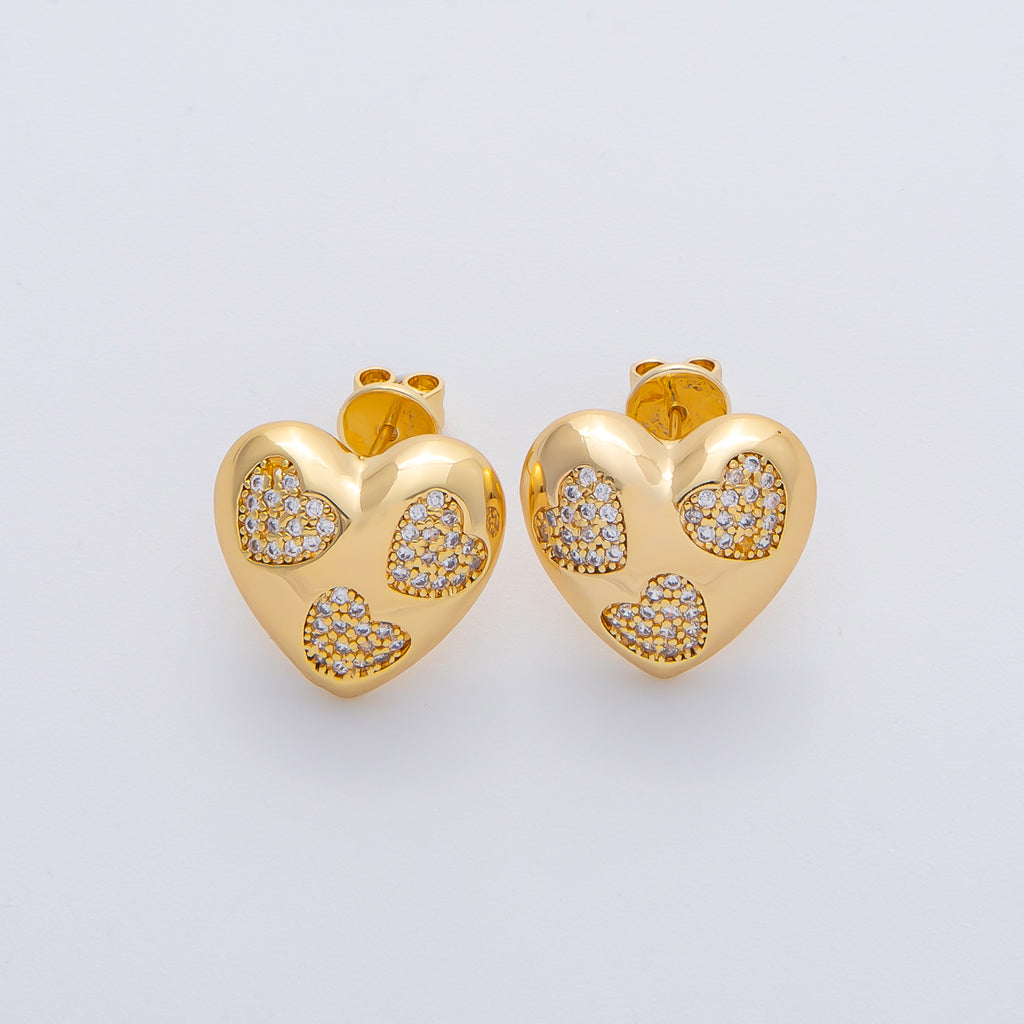18K Gold Filled 16mm Micro Paved CZ Heart Cluster Heart Stud Earrings | AD1598