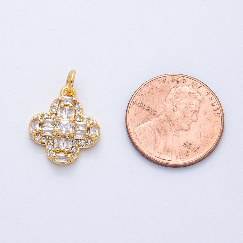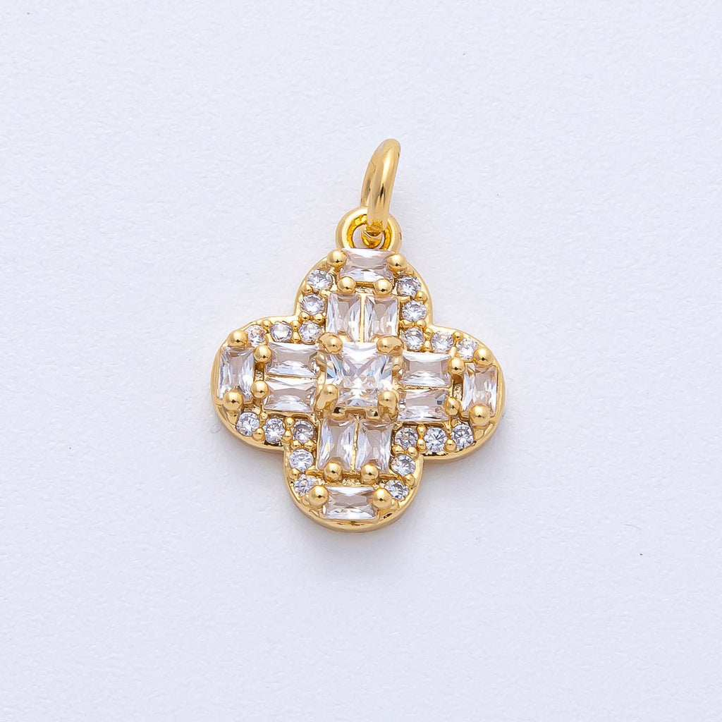 18K Gold Filled 16mm Rectangle Woven Micro Paved CZ Clover Flower Charm | AK171