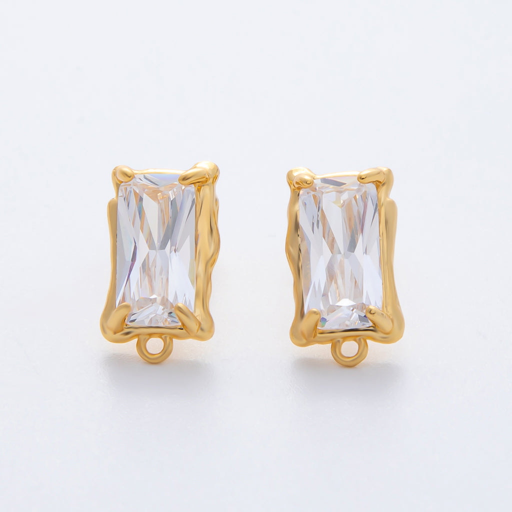 18K Gold Filled Clear Baguette CZ Molten Drop Stud Earrings | Z1447