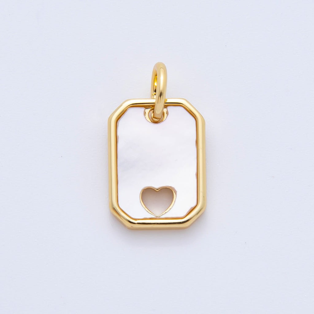 18K Gold Filled 17.5mm Shell Pearl Open Heart Tag Charm | C740