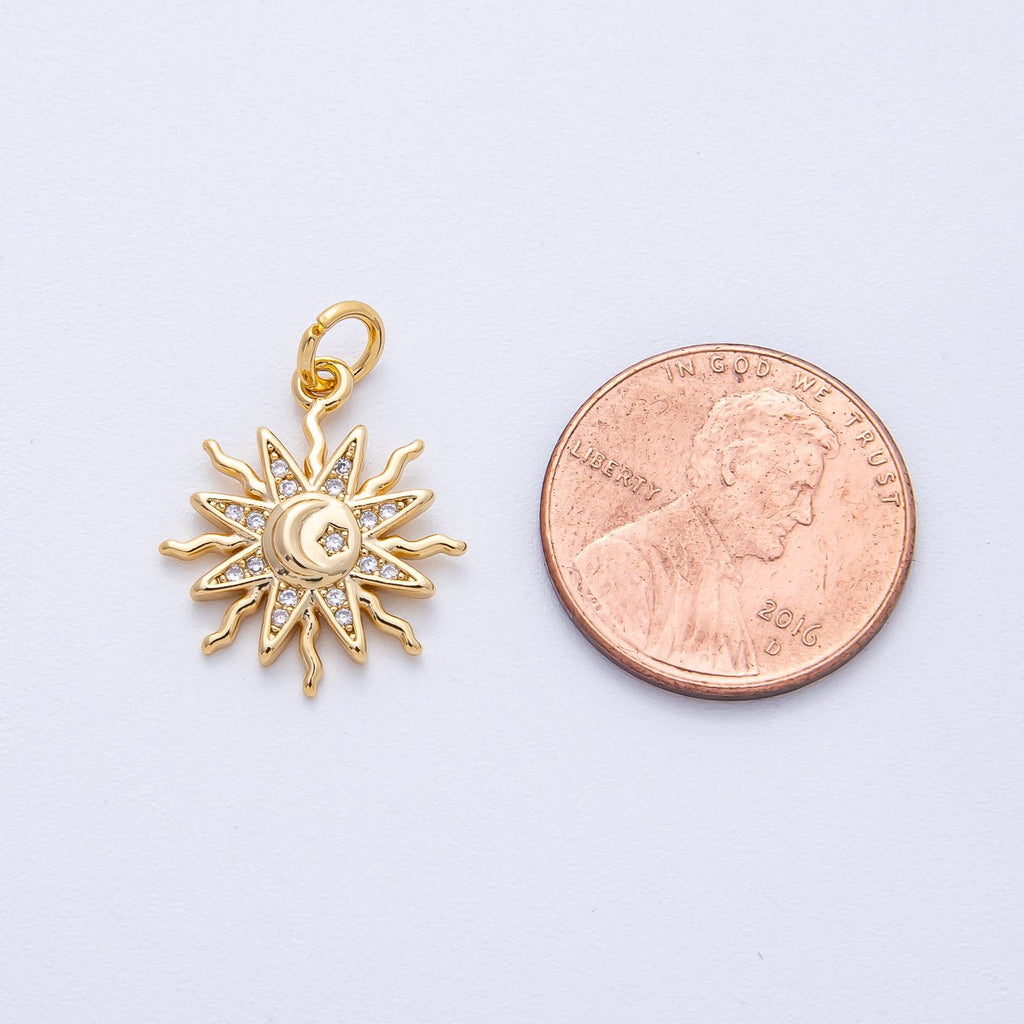 18K Gold Filled 18mm Clear Micro Paved CZ Celestial Crescent Moon Star Sun Ray Charm | AK164