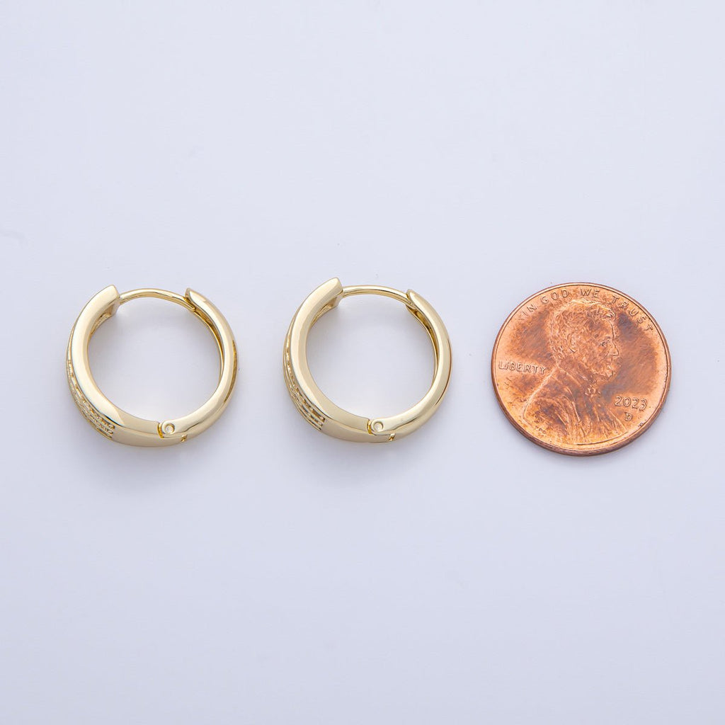 14K Gold Filled 18mm Triple Micro Paved CZ Huggie Earrings | Earrings-00091
