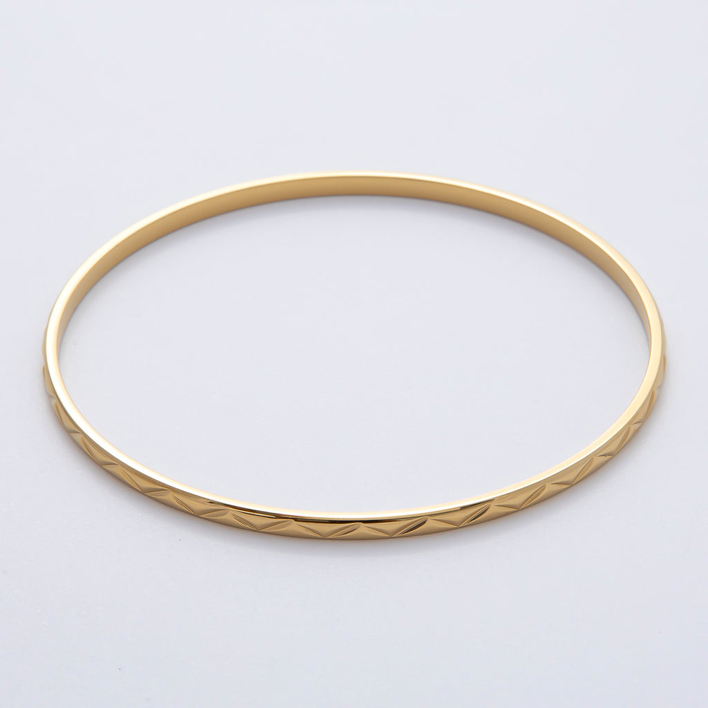 18K Gold Filled 2.5mm Thin Lined Imprint Bangle Bracelet | WA-1472