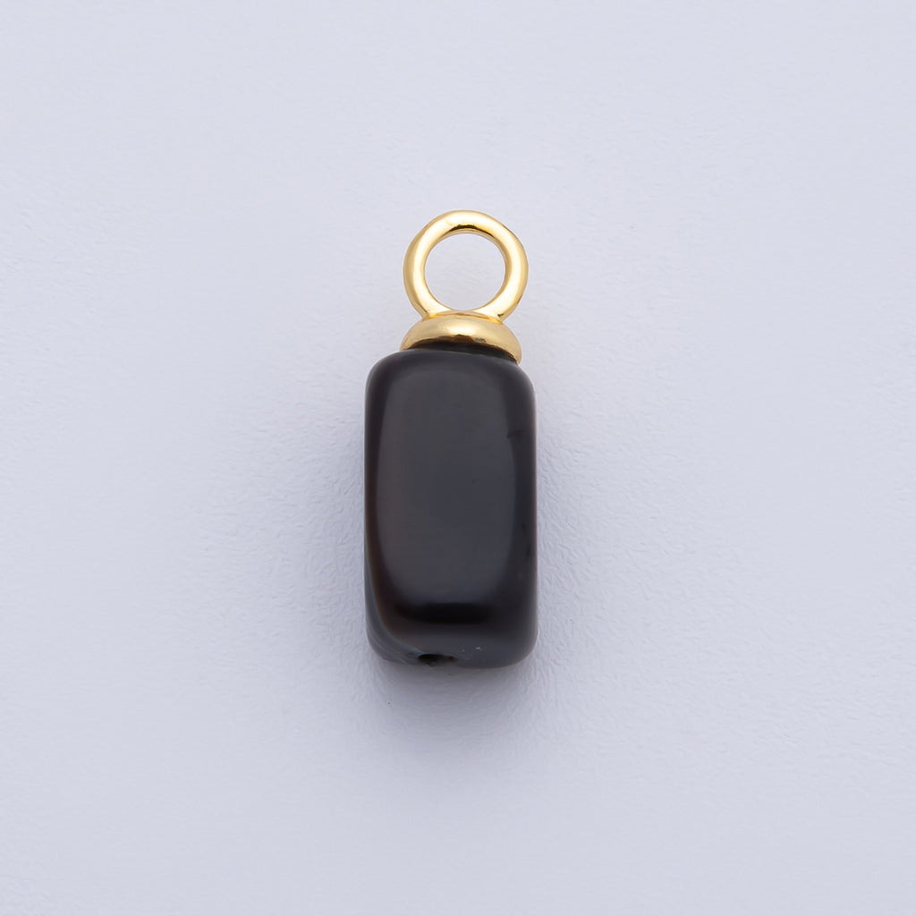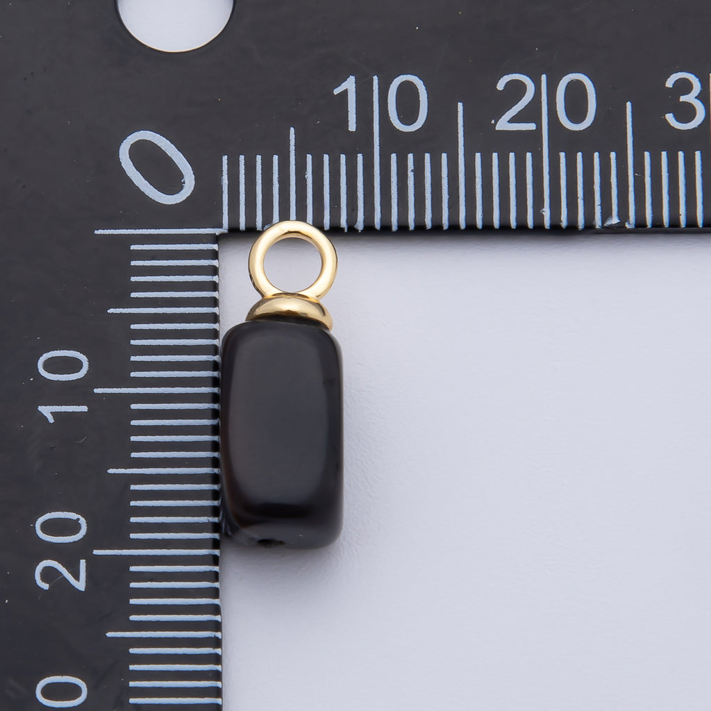 18K Gold Filled 20mm Black Onyx Gemstone Tube Drop Charm | AK144