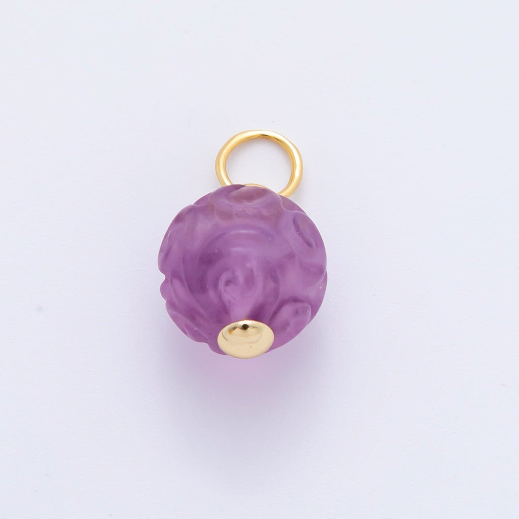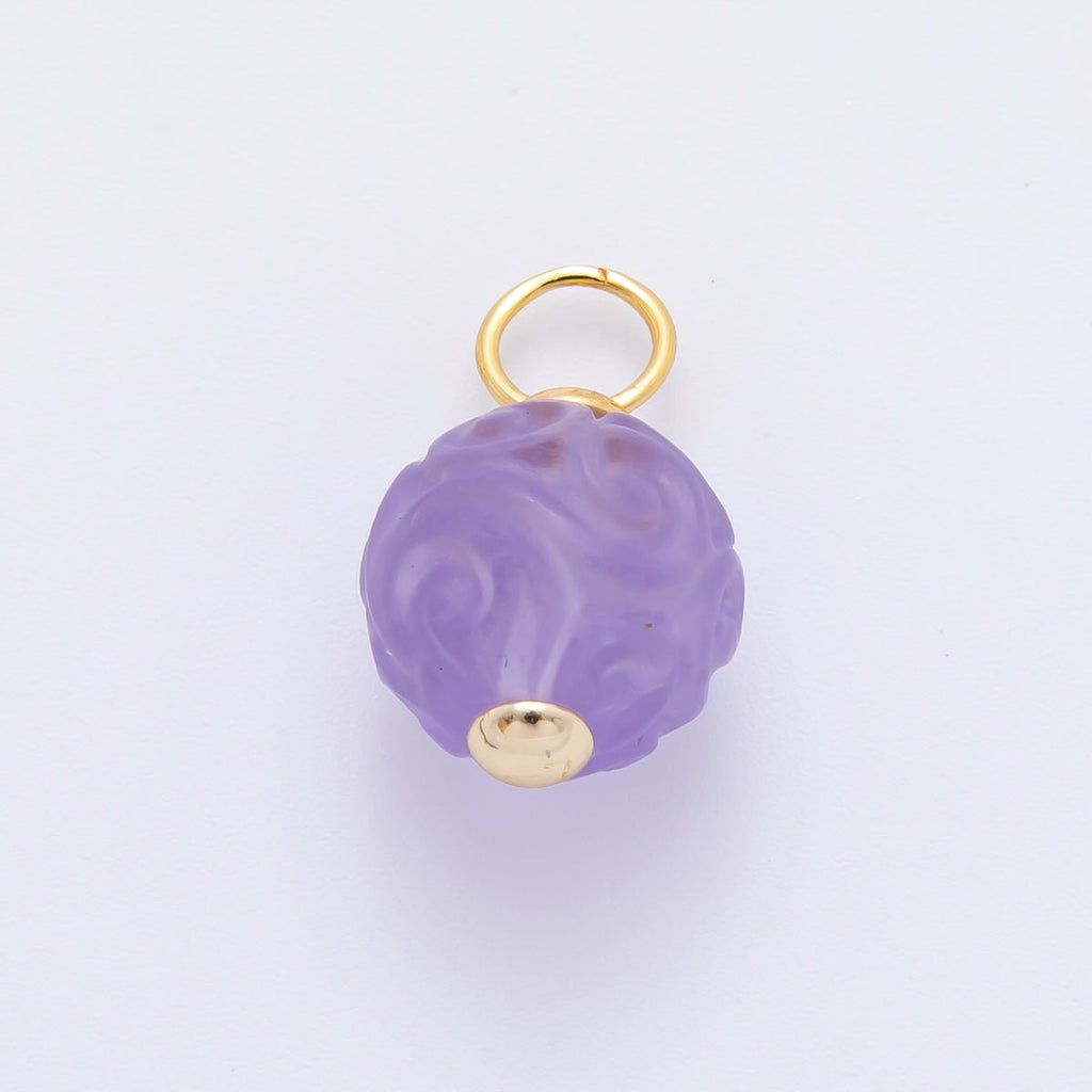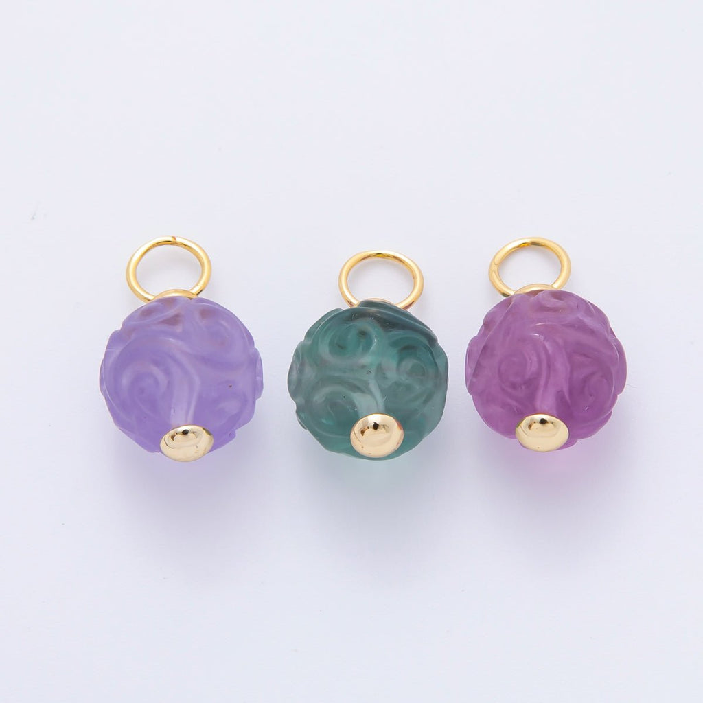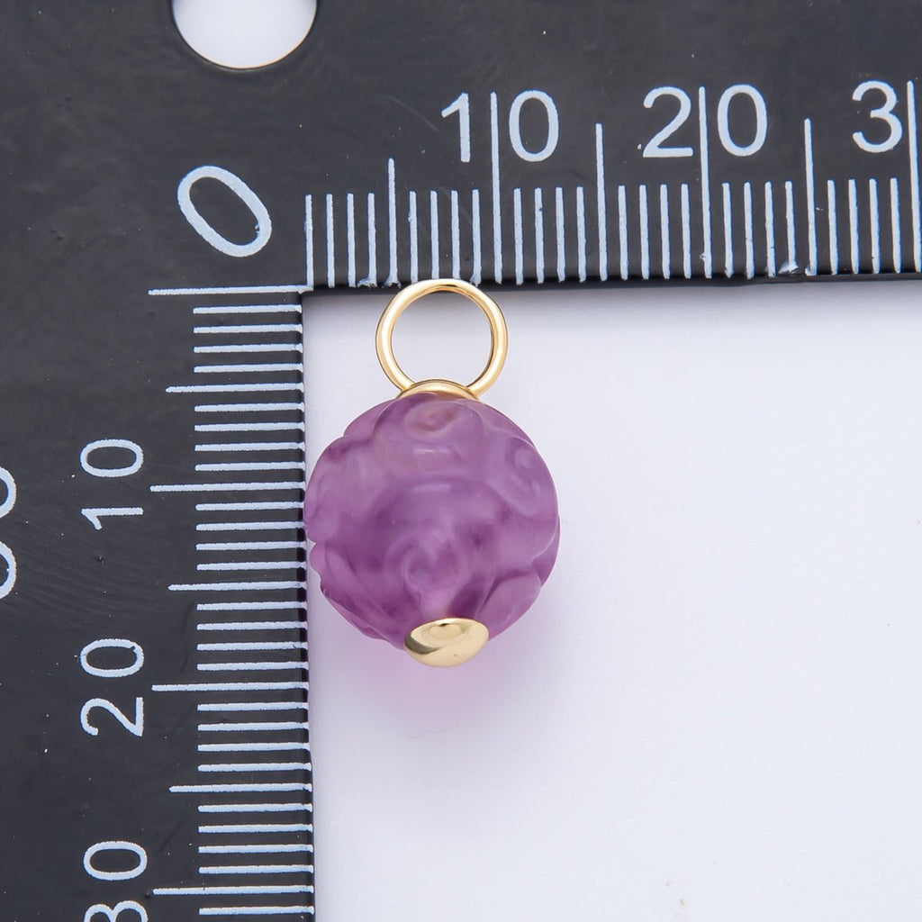 18K Gold Filled 20mm Natural Gemstone Fluorite Textured Ball Charm | E011 E019