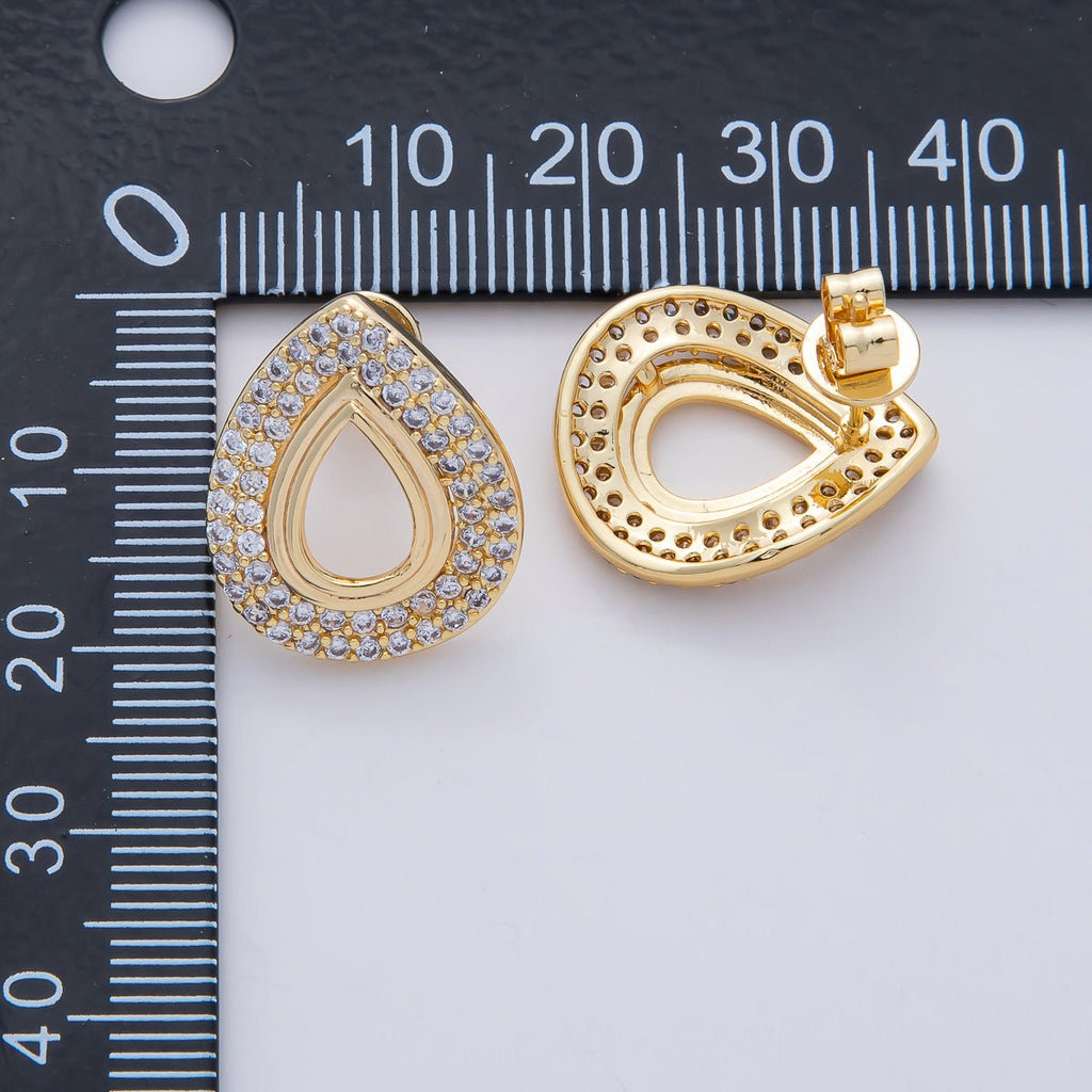 18K Gold Filled 20mm Open Micro Paved CZ Teardrop Stud Earrings | AD1601