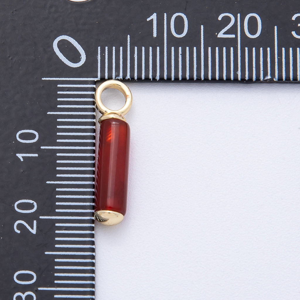 18K Gold Filled 20mm Red Carnelian Gemstone Cylinder Tube Drop Charm | AK148