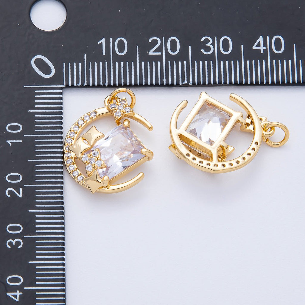 18K Gold Filled 20mm Rhombus Micro Paved CZ Crescent Moon Charm | AK155