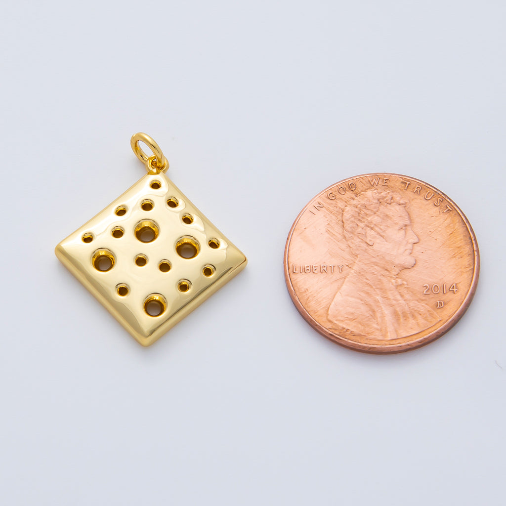 18K Gold Filled 20mm Dotted Slice of Cheese Rhombus Charm | AF1414