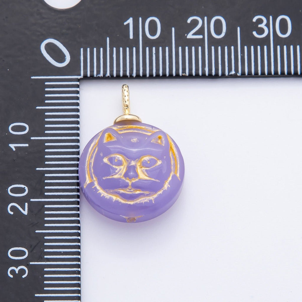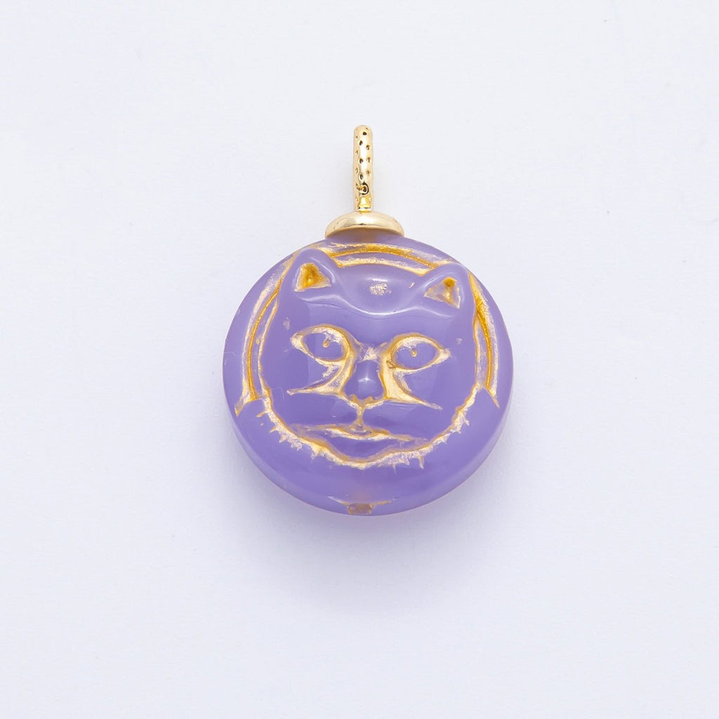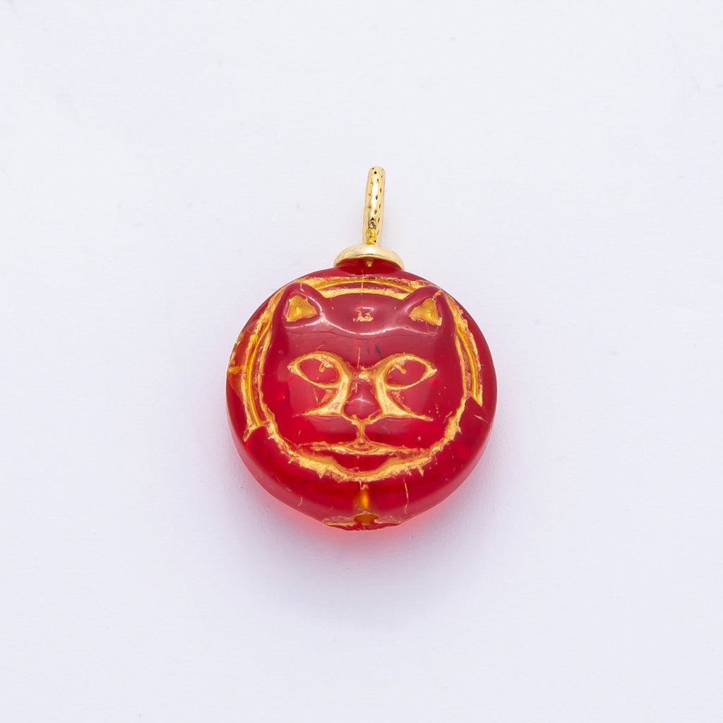 18K Gold Filled 22mm Colorful Czech Beads Adorable Cat Pet Animals Charm | N238