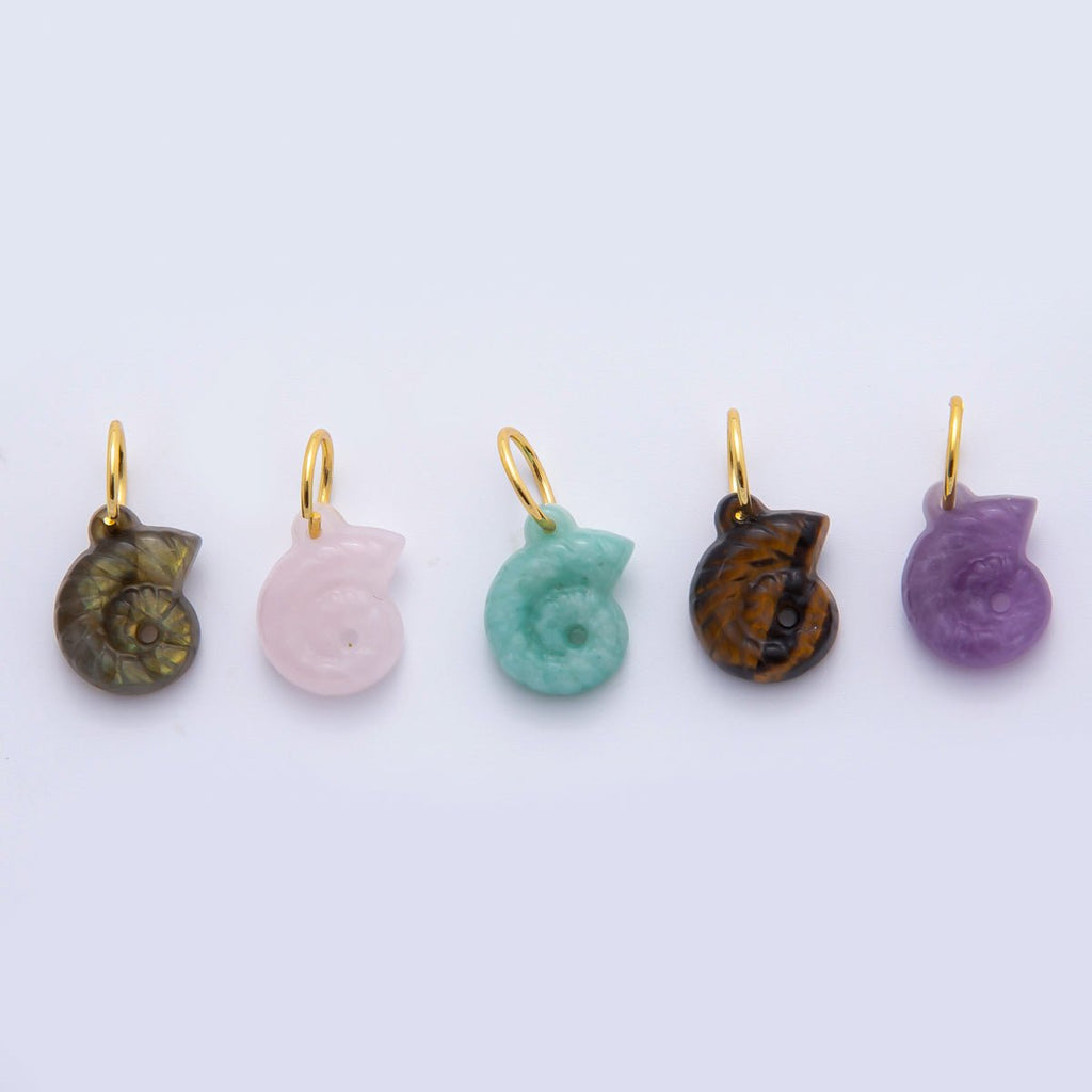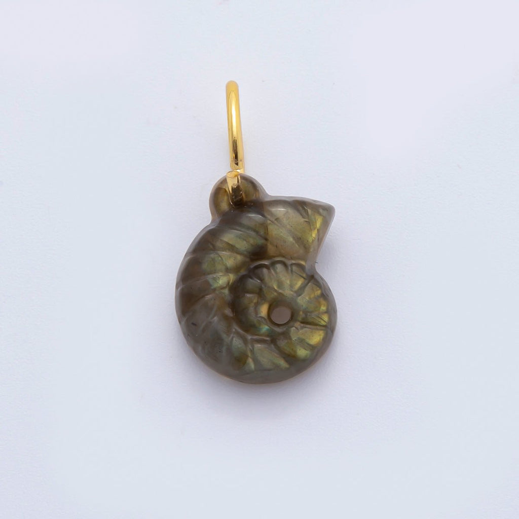 18K Gold Filled Amethyst, Quartz, Labradorite Conch Sea Shell Drop Charm | C548 C606 C612