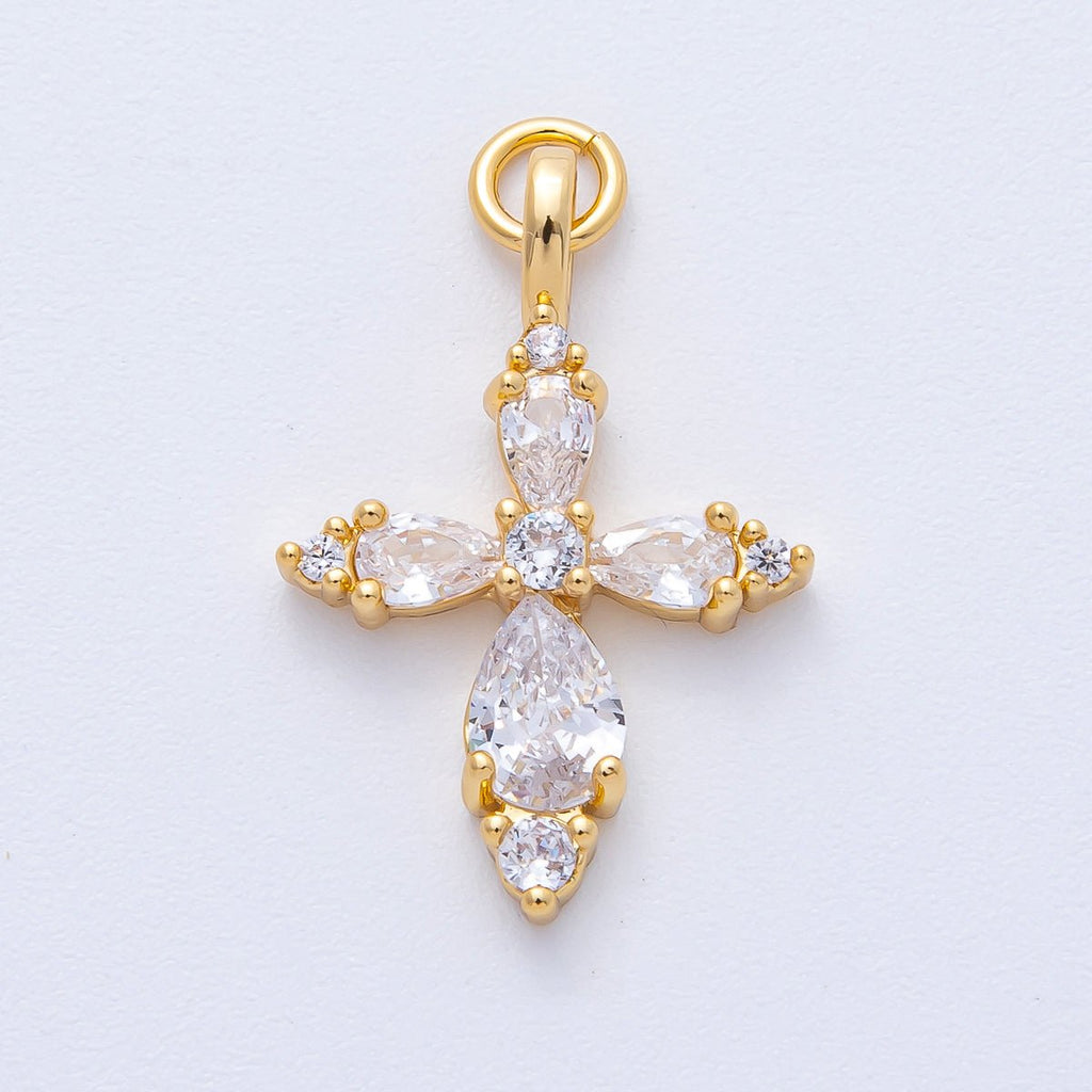 18K Gold Filled 26mm Clear CZ Teardrop Religious Passion Cross Charm | AK199