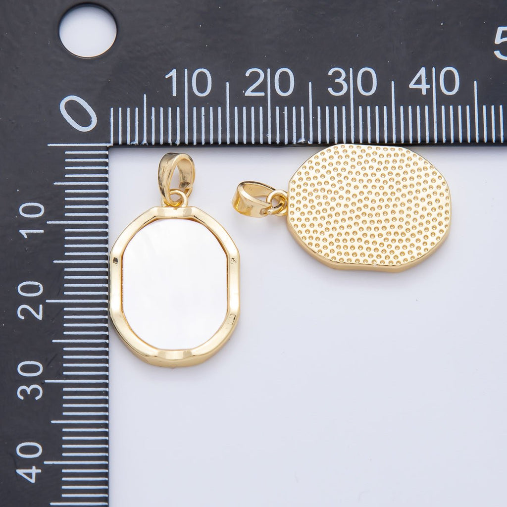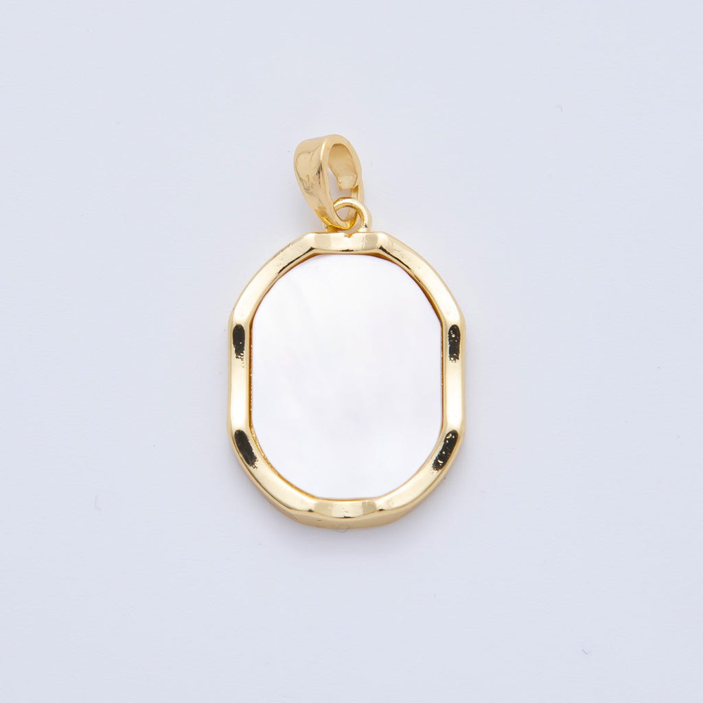 18K Gold Filled 27mm Shell Pearl Oval Tag Mirror-Like Charm | AF1116