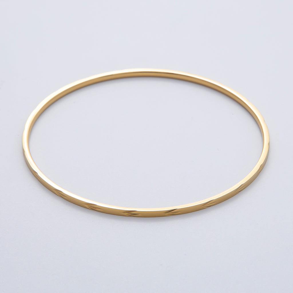 18K Gold Filled 2mm Thin Triple Lined Leaf Imprint Bangle Bracelet | WA-1457