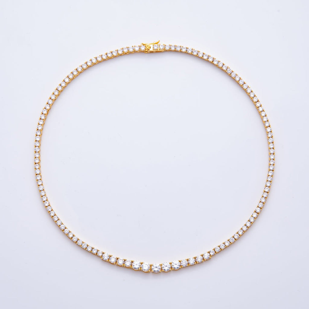 18K Gold Filled 3.3mm 5mm Gradient Clear CZ Tennis Chain 16.5 Inch Necklace | WA-3269