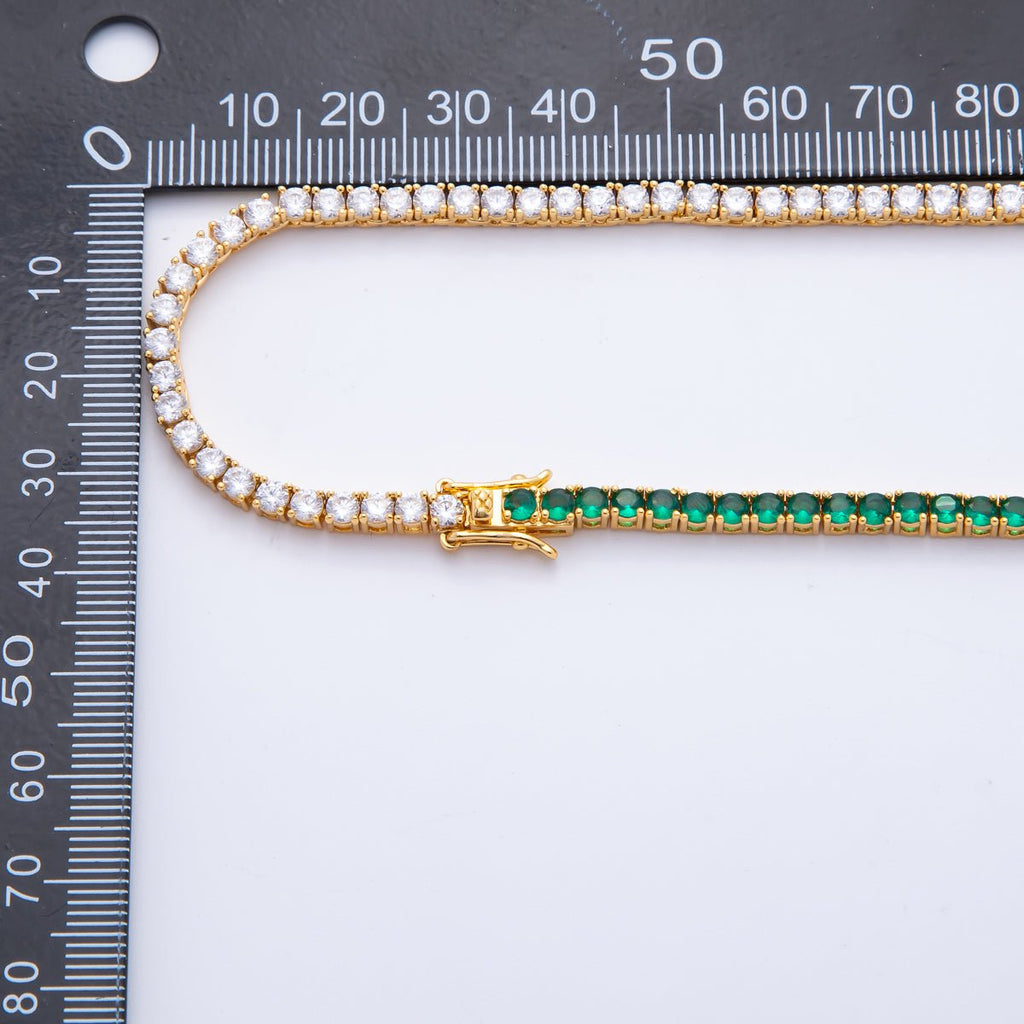 18K Gold Filled 3.5mm Green, Fuchsia CZ Half Clear Tennis Chain 16.5 Inch Necklace | WA-3266 WA-3267