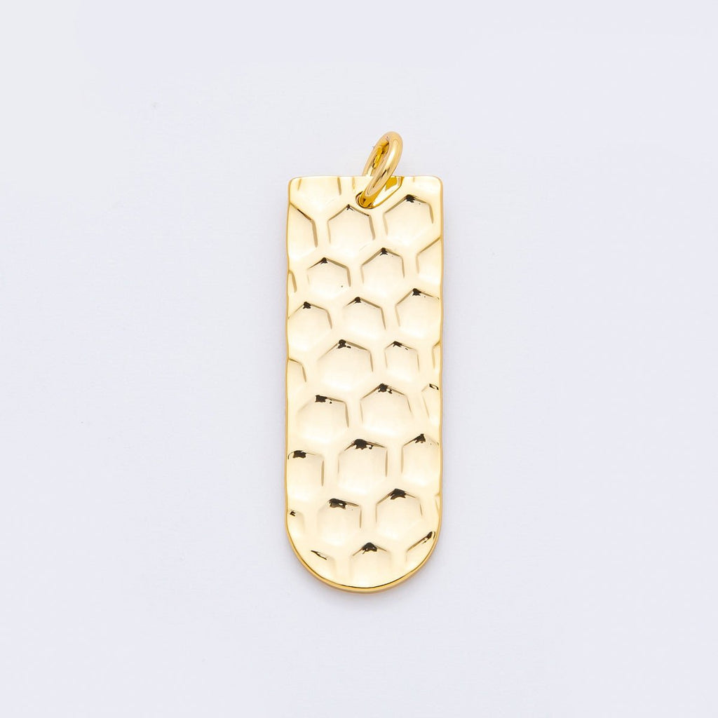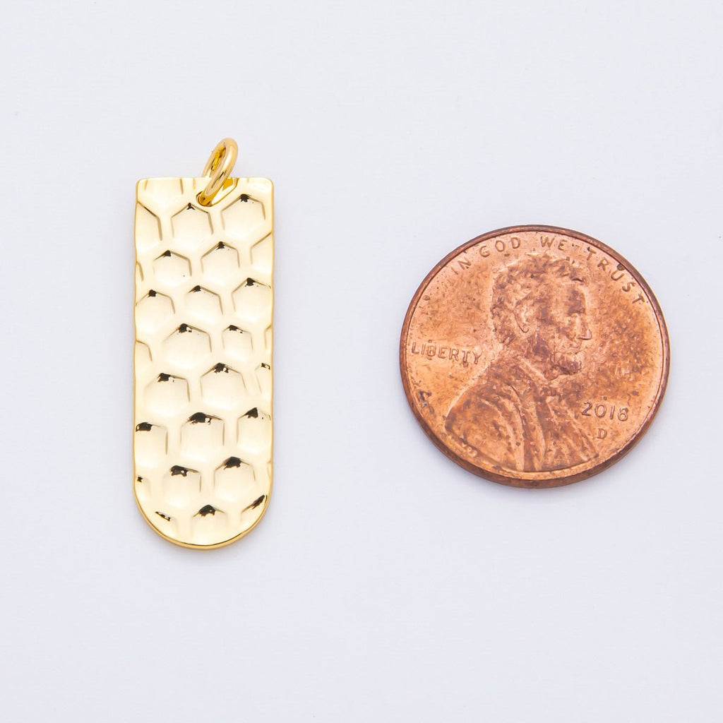 18K Gold Filled 30mm Honeycomb Textured Long Oval Charm | N320