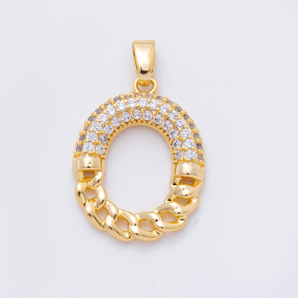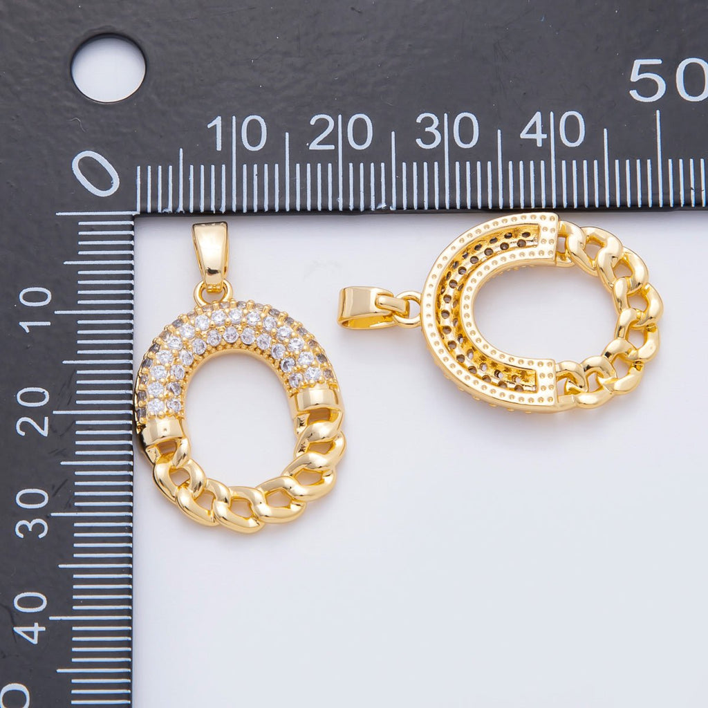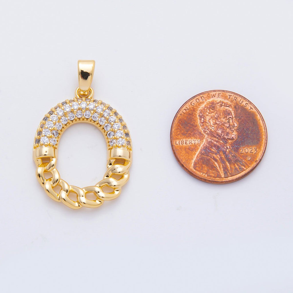 18K Gold Filled 31mm Micro Paved CZ Geometric Donut Oblong Pendant | AF1117
