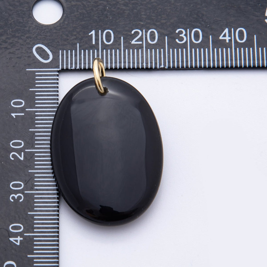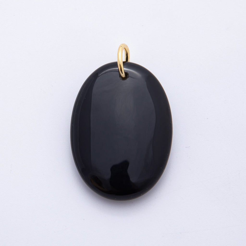 18K Gold Filled 39mm Black Agate Gemstone Oval Bead Charm | E460