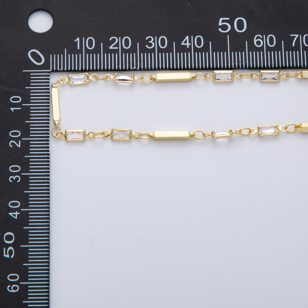 18K Gold Filled 3mm Clear Baguette CZ Bar Unfinished Chain by Yard | Roll-1778