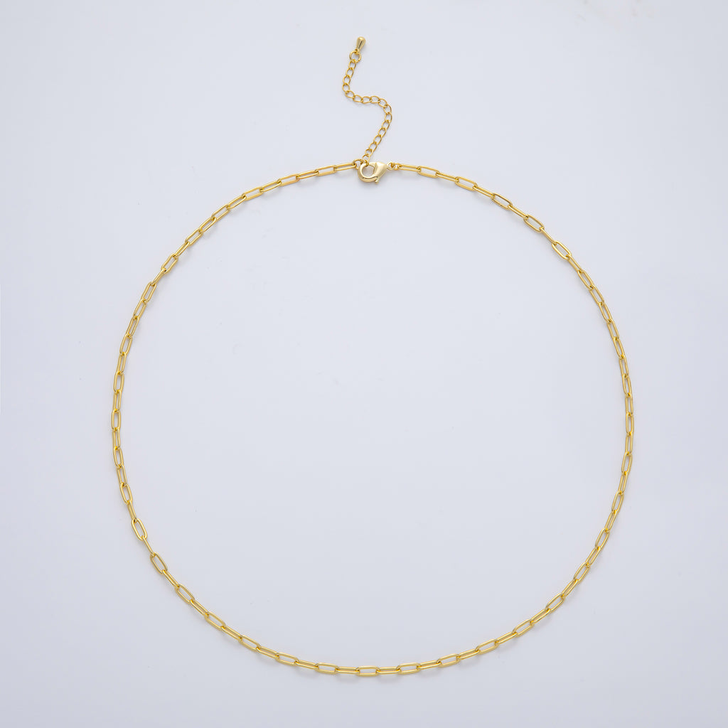 18K Gold Filled 3mm Mini Paperclip Chain 19 Inch Necklace w. Extender | WA-1189