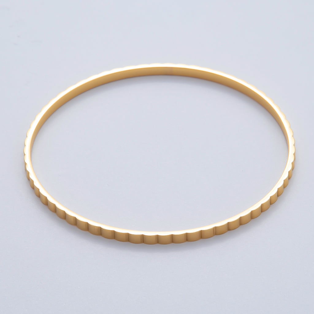 18K Gold Filled 2.7mm Ribbed Lined Bangle Bracelet | WA-1464