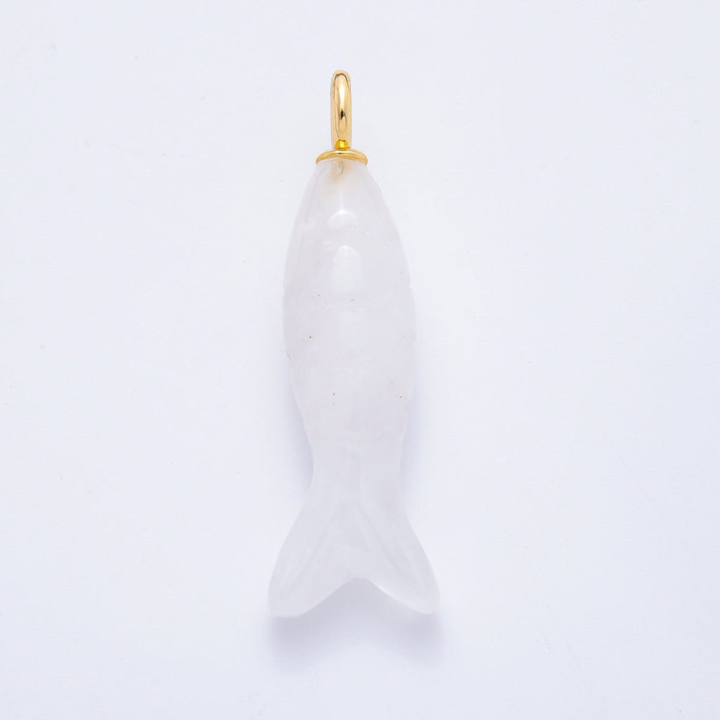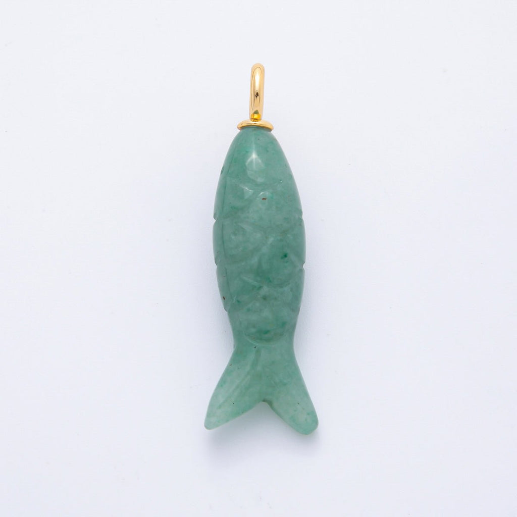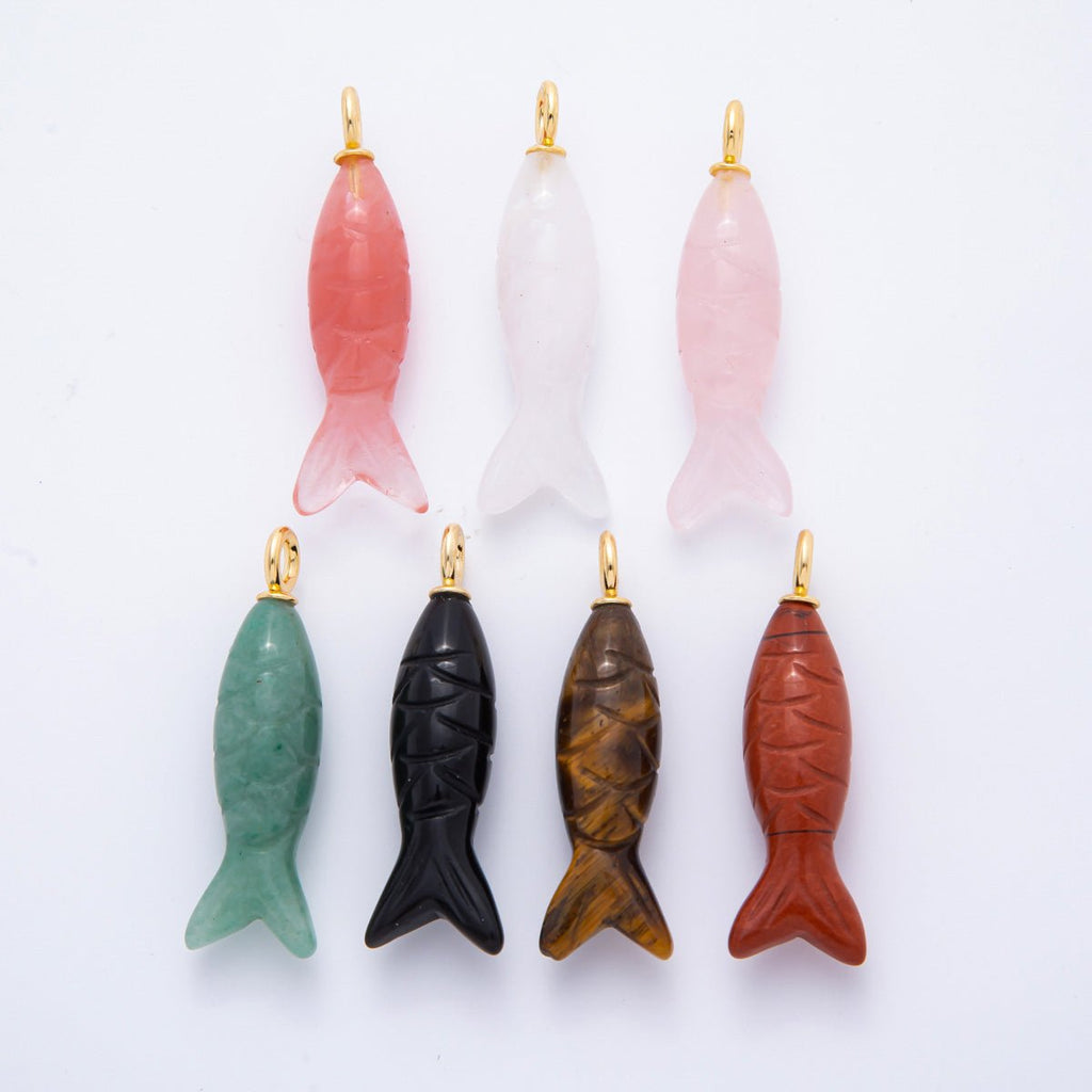 18K Gold Filled 48mm Quartz, Agate, & Tiger Eye Gemstone Sardine Fish Charm | C919 C923 C932 E008
