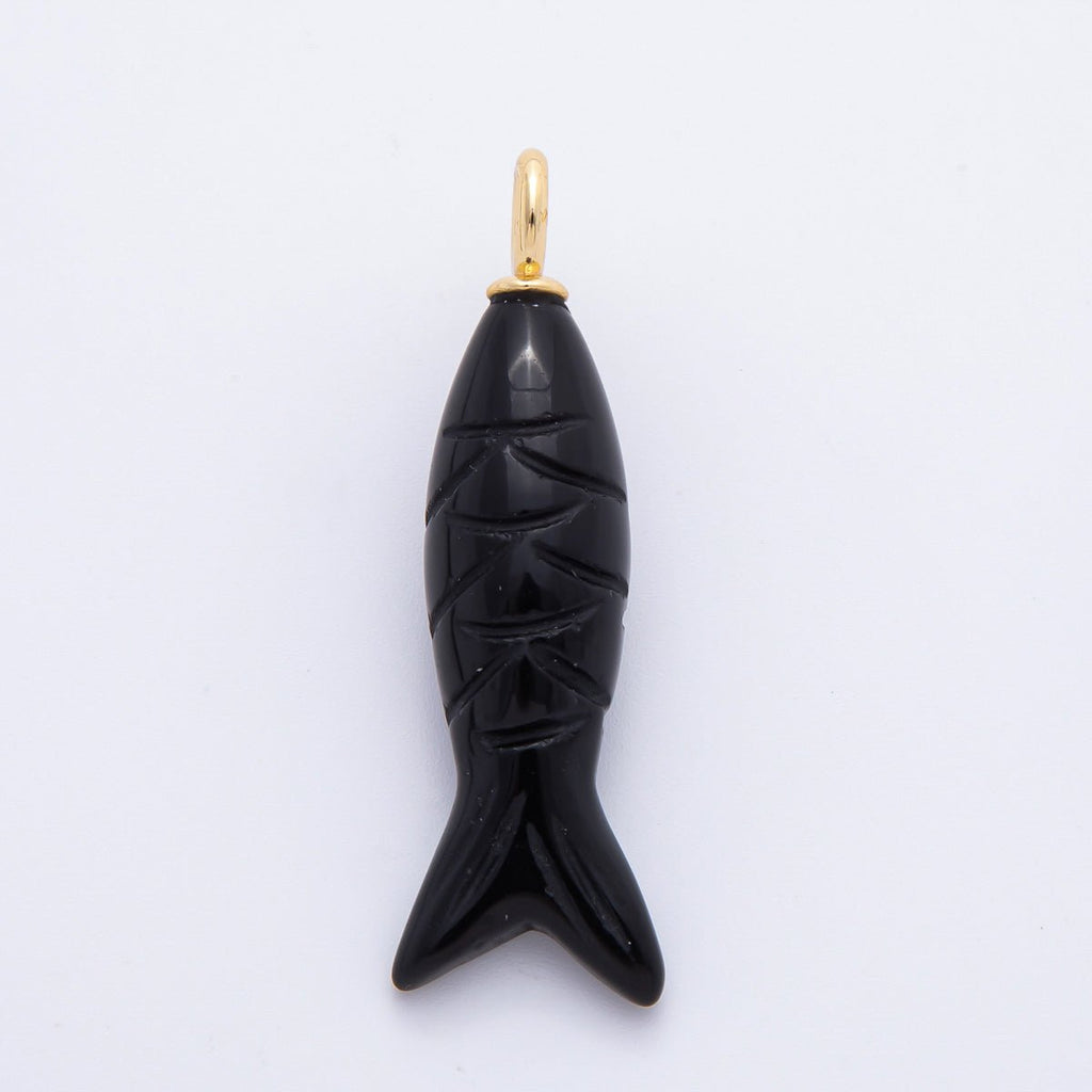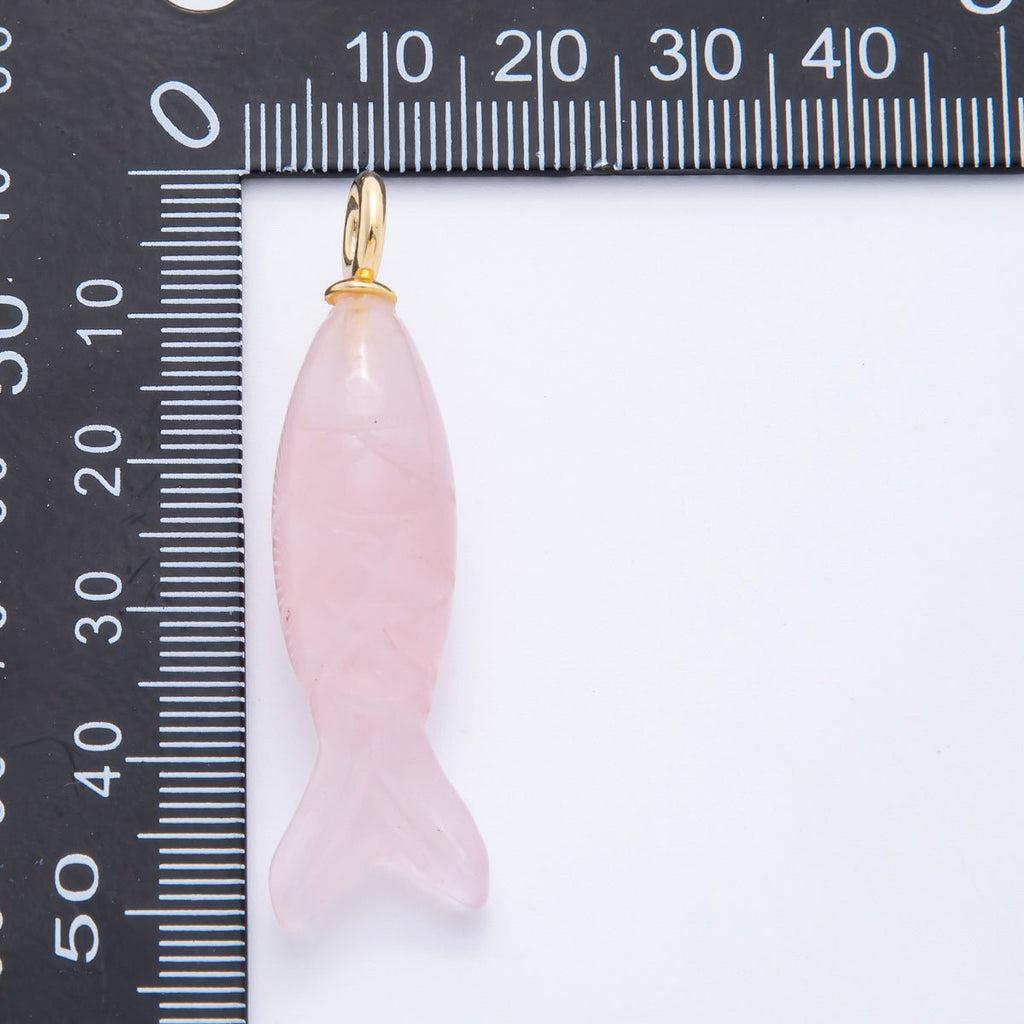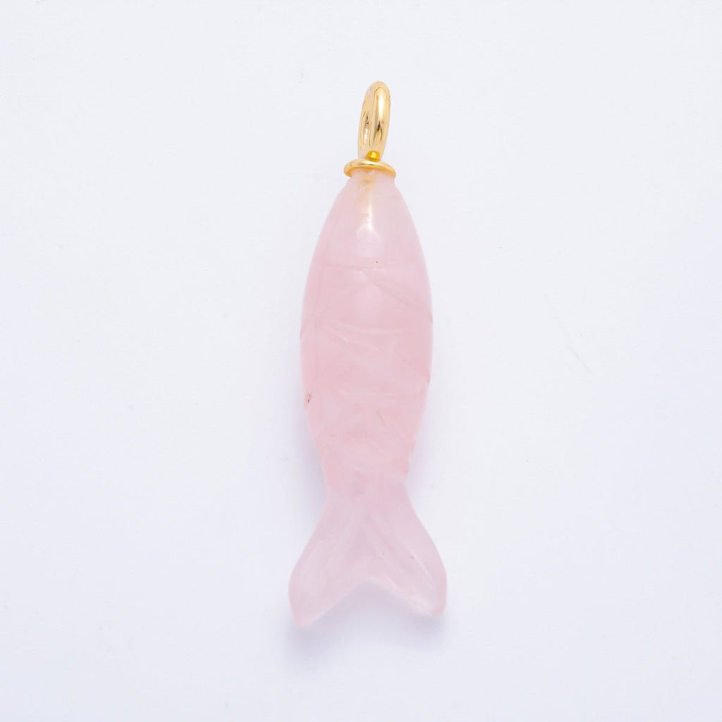 18K Gold Filled 48mm Quartz, Agate, & Tiger Eye Gemstone Sardine Fish Charm | C919 C923 C932 E008