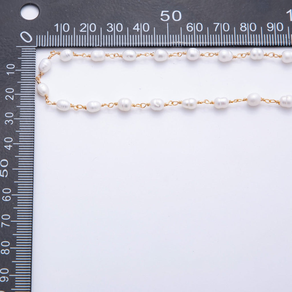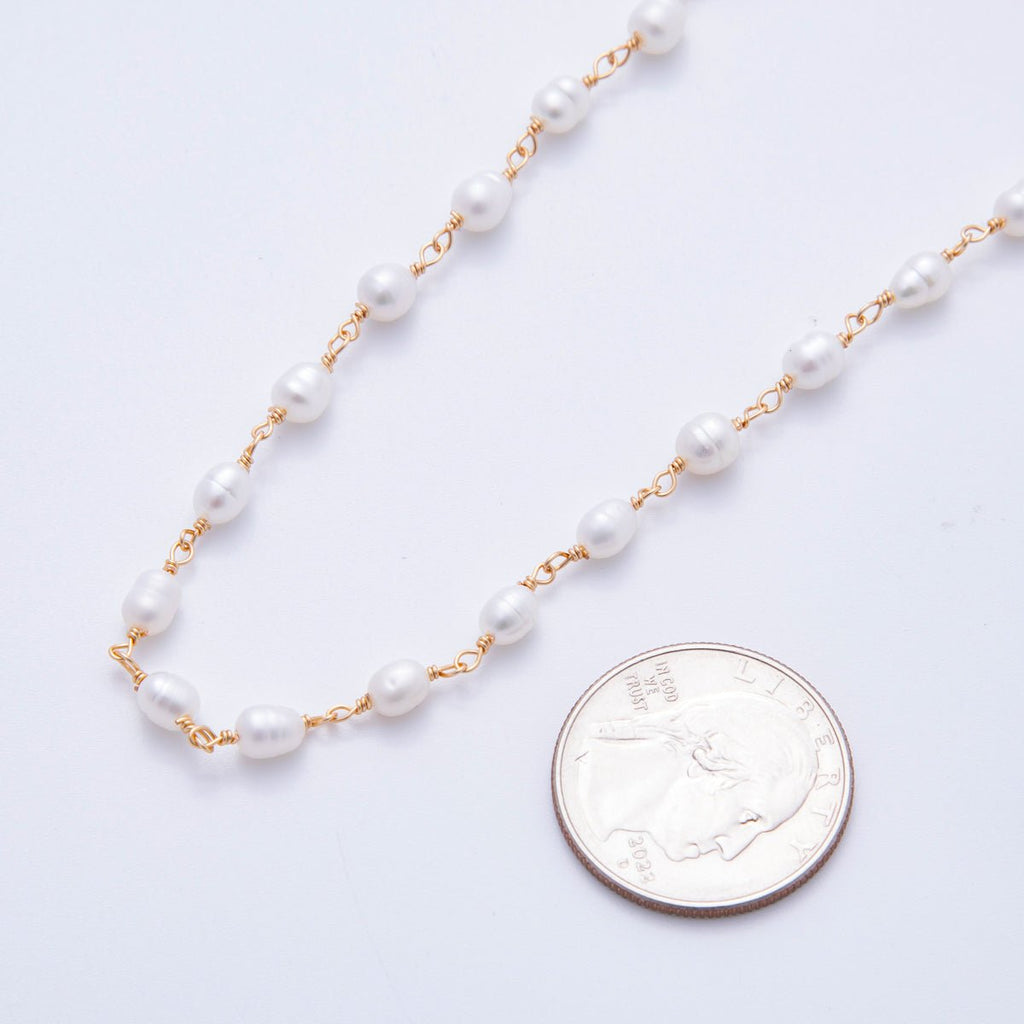 18K Gold Filled 4mm Unfinished Potato Pearl Rosary Chain by Yard | ROLL-1705