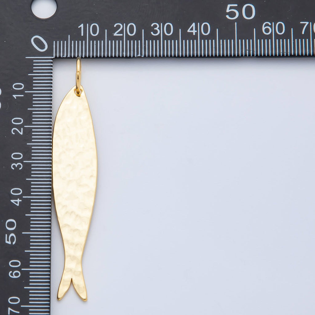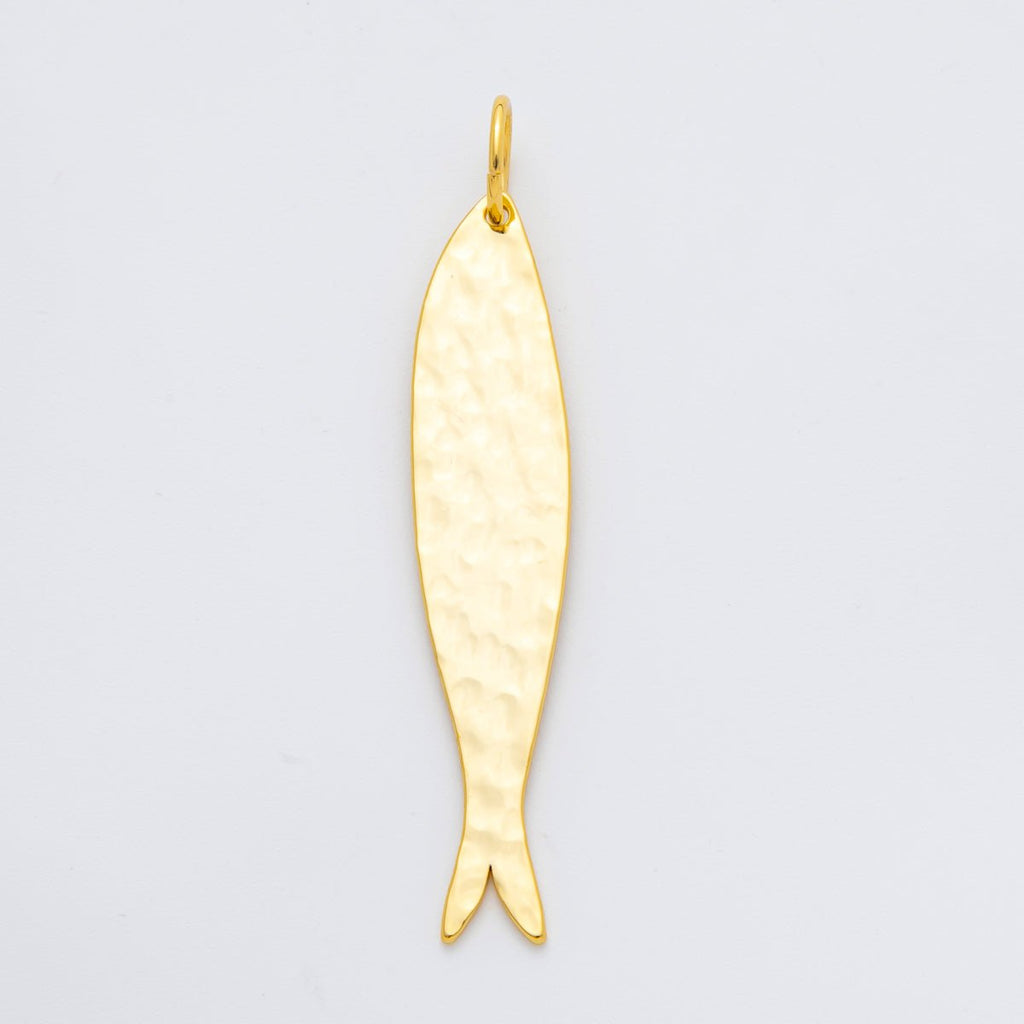 18K Gold Filled 68mm Long Minimalist Hammered Sardine Fish Charm | AF1313