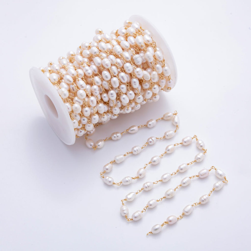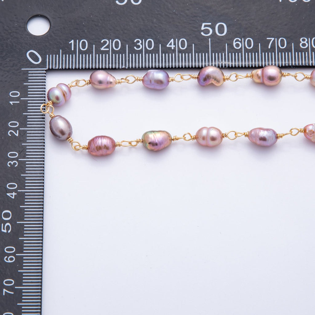 18K Gold Filled 6mm White, Pink, & Purple Unfinished Potato Pearl Rosary Chain by Yard | ROLL-1706 - ROLL-1708