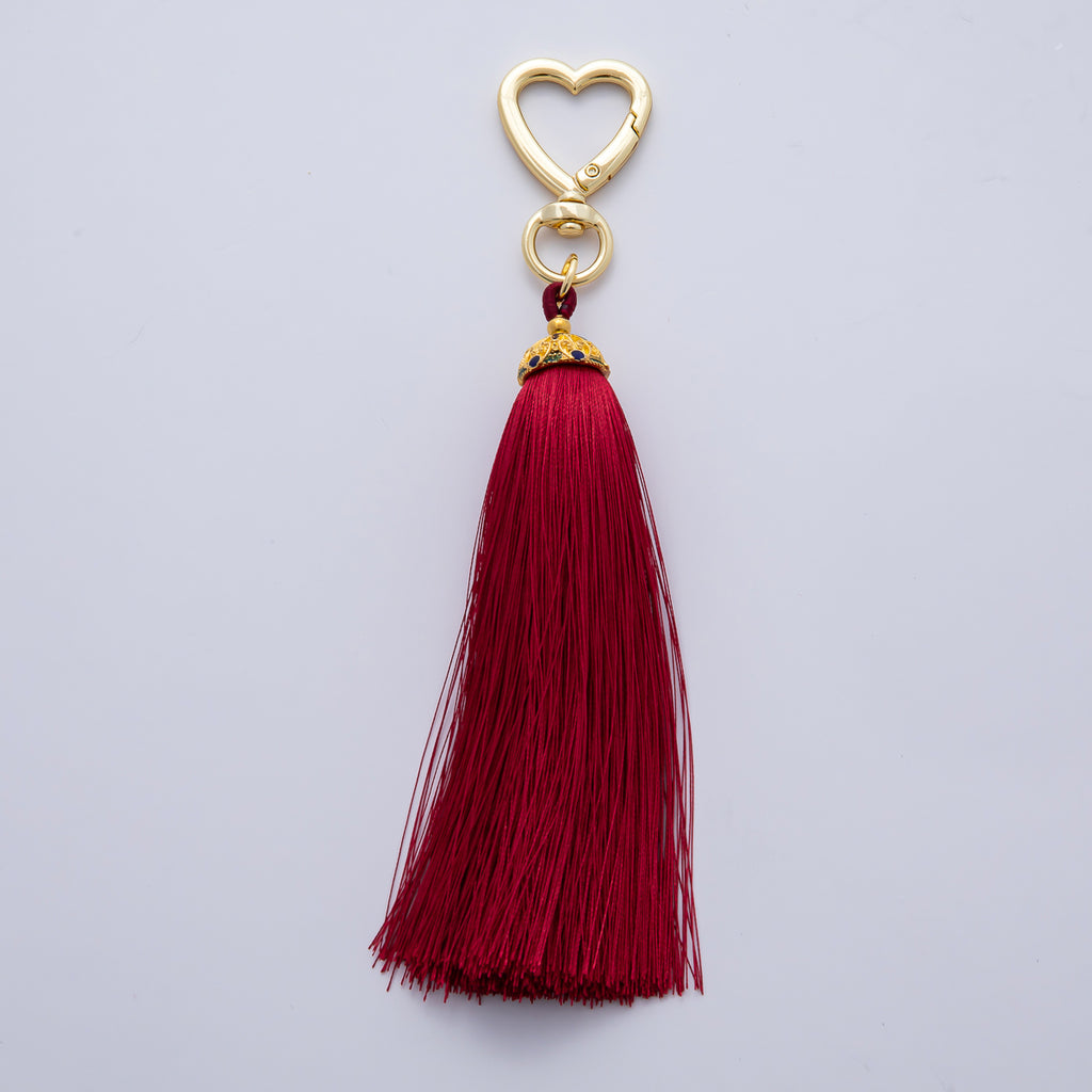 18K Gold Filled Blue, Black, Red, Purple, Green, Brown, White Tassel Heart Push Gate Keychain Fringe Accessories | WB-00213 ~ WB-00219