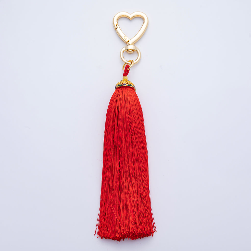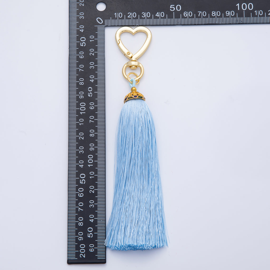 18K Gold Filled Blue, Red, Yellow, Pink, Orange Tassel Heart Push Gate Keychain Fringe Accessories | WB-00281 ~ WB-00285
