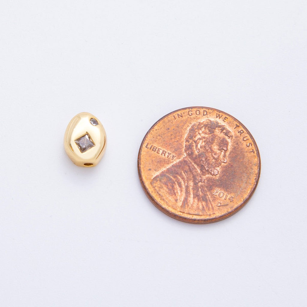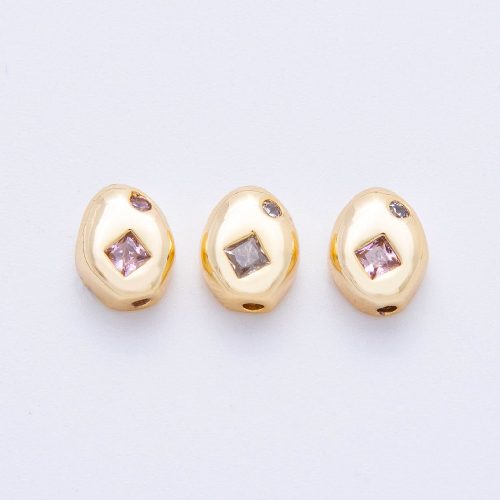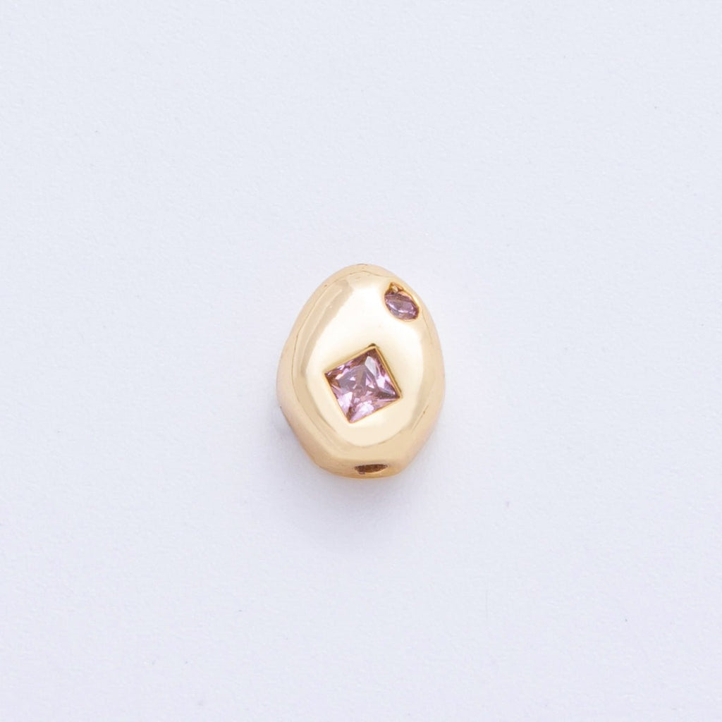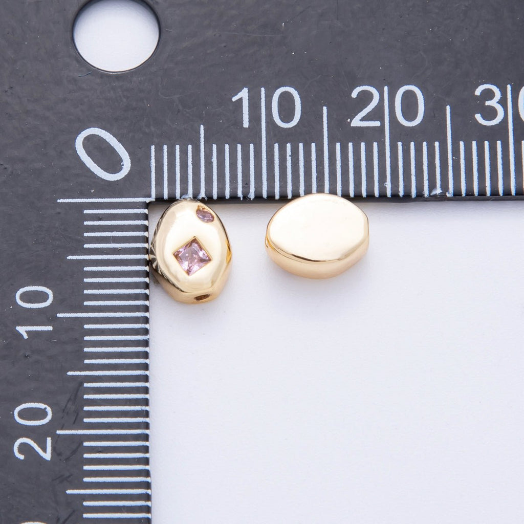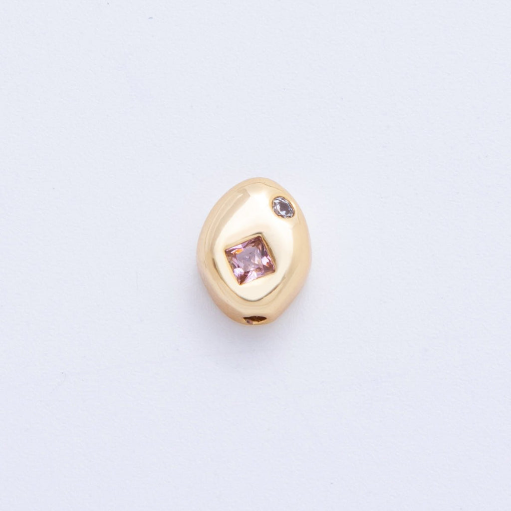 18K Gold Filled Clear, Pink Rhombus CZ Geometric Oval Bead Spacer | AF1022 AF1023