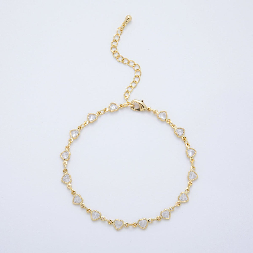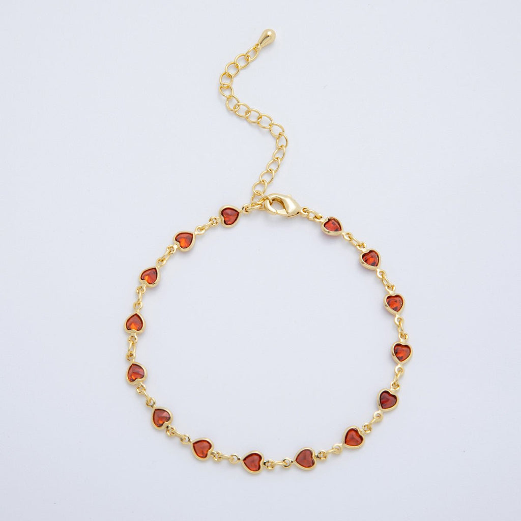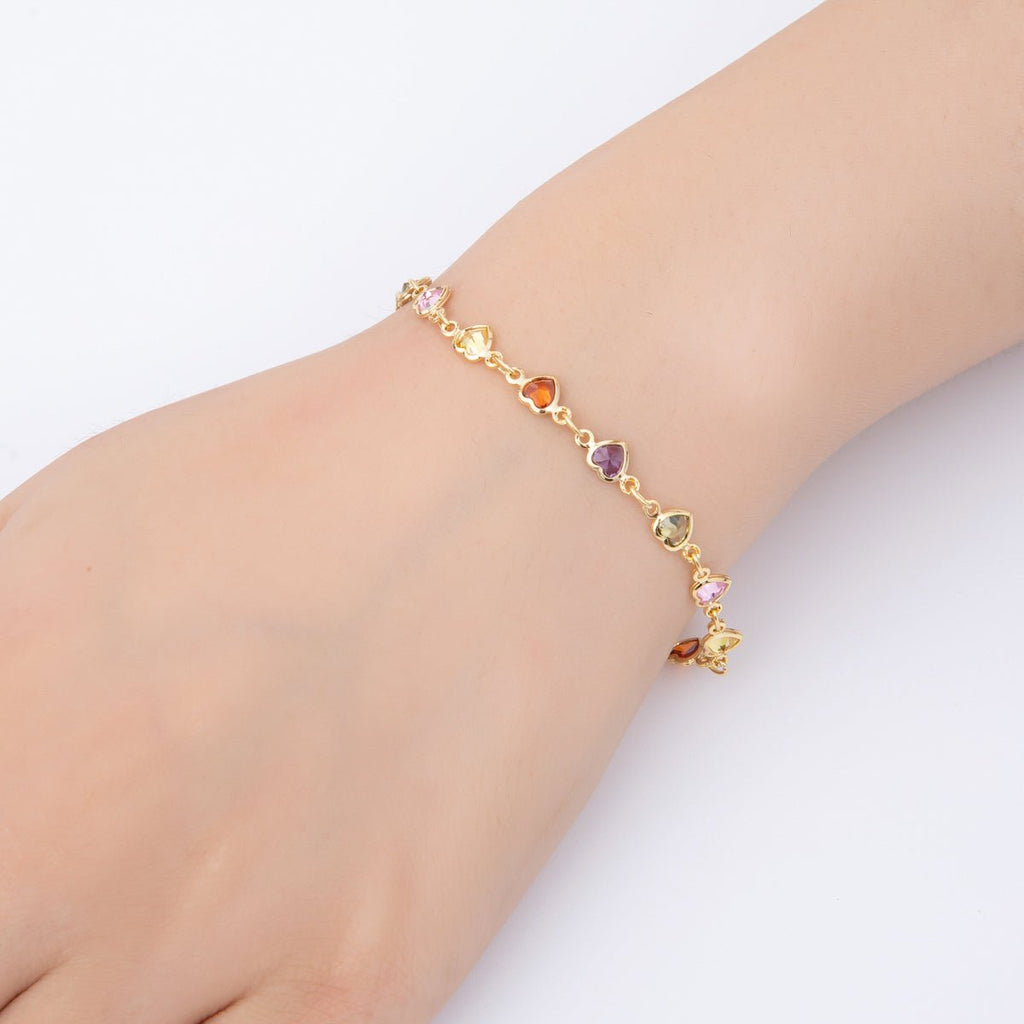18K Gold Filled Clear, Multicolor, Red CZ Heart Star Sideway Straight 6.9 Inch Bracelet | WA-3781 - WA-3782