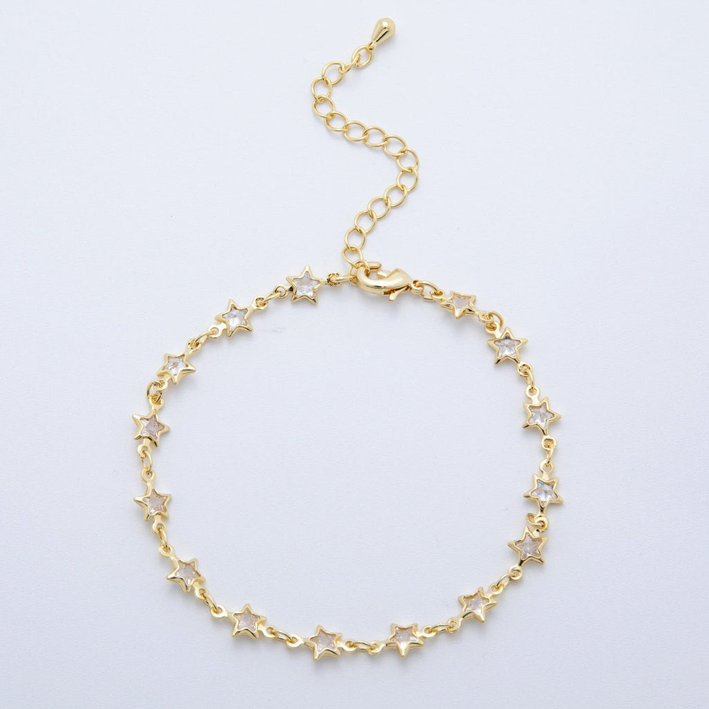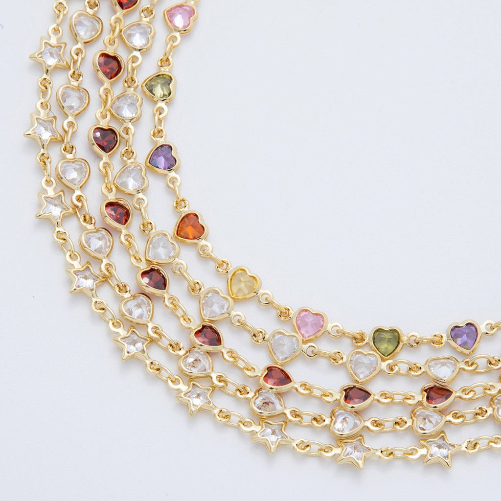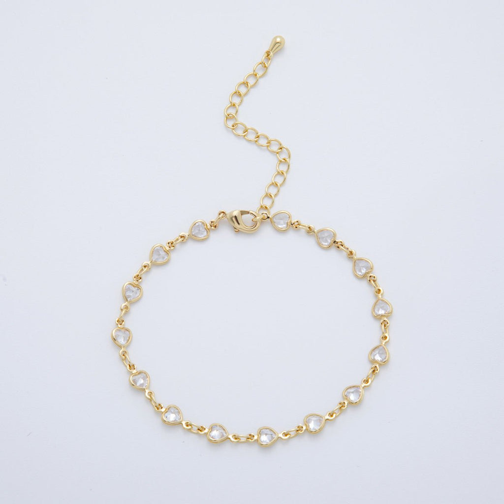18K Gold Filled Clear, Multicolor, Red CZ Heart Star Sideway Straight 6.9 Inch Bracelet | WA-3781 - WA-3782