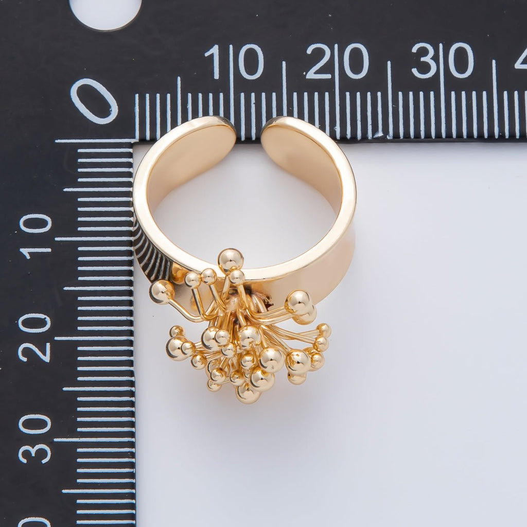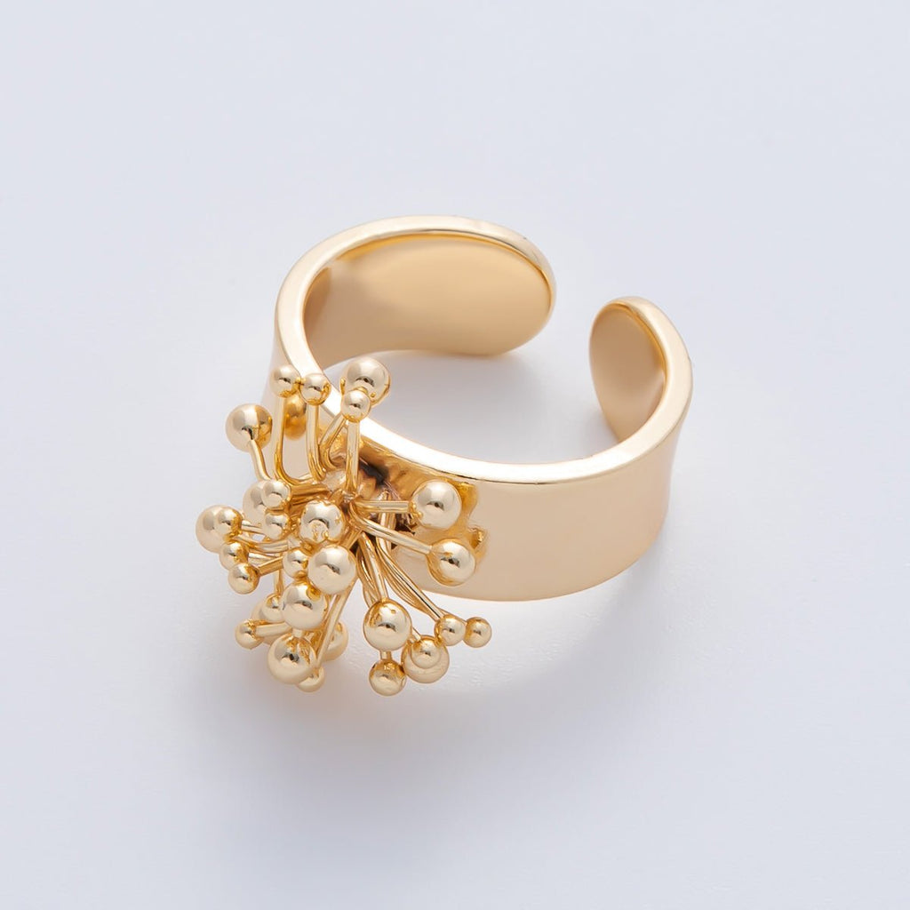 18K Gold Filled Minimalist Beaded Flower Wide Band Ring | O605