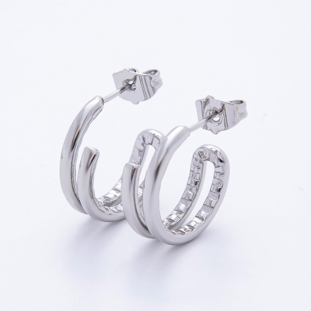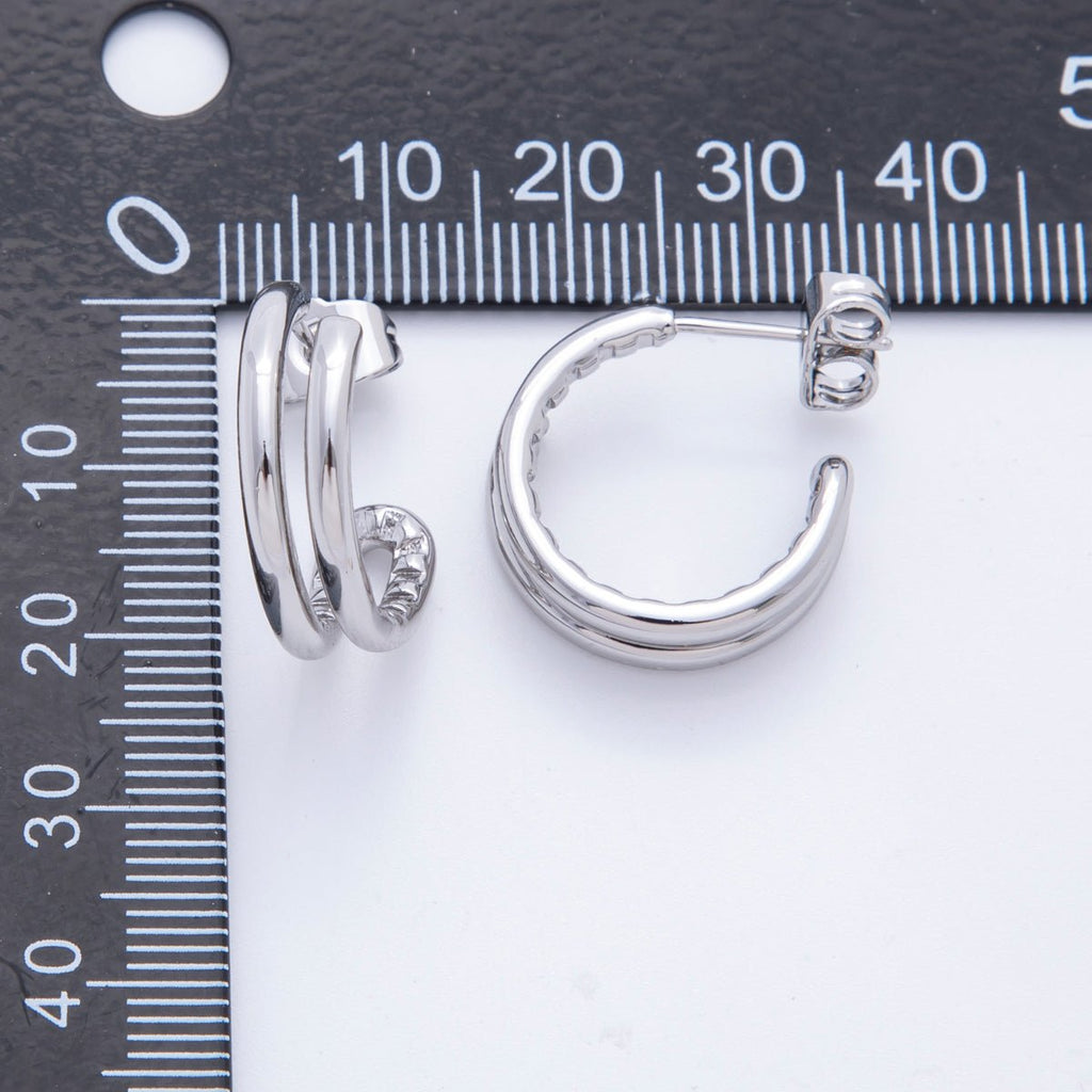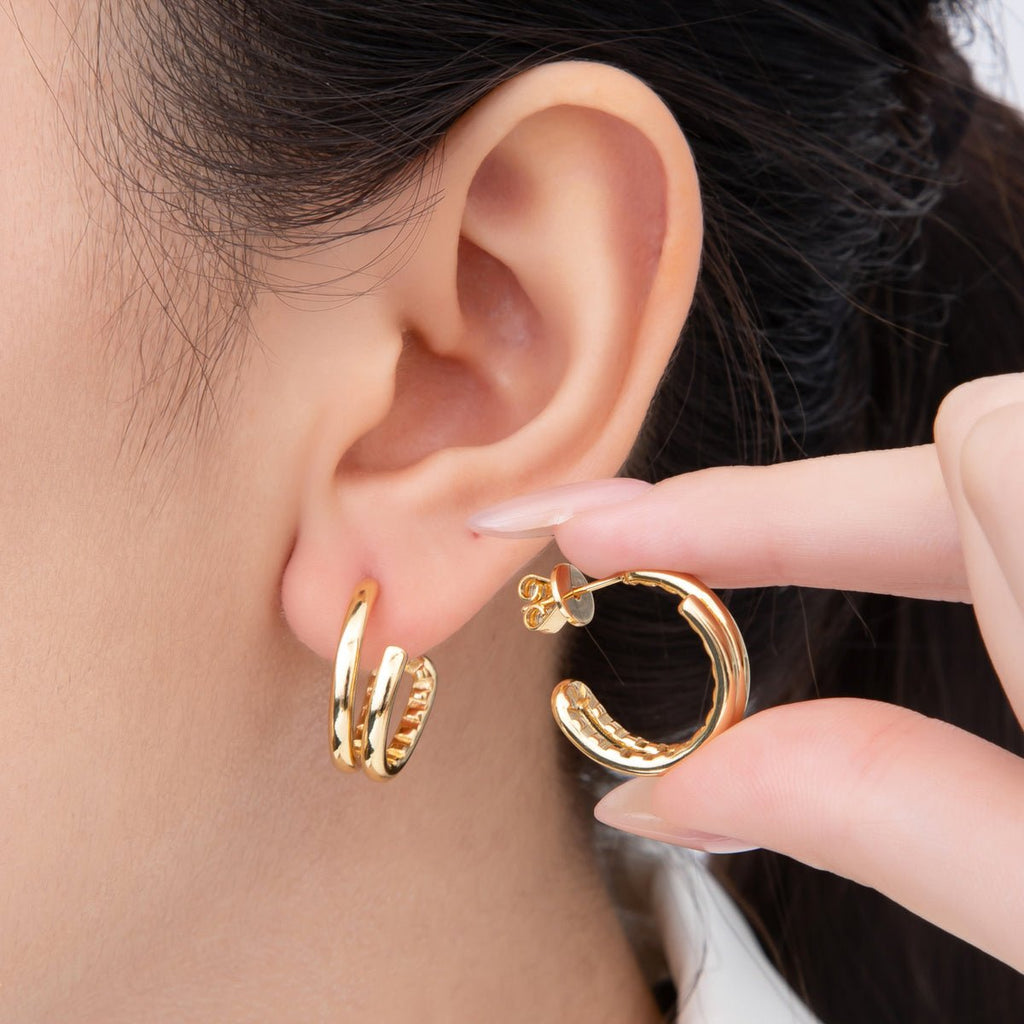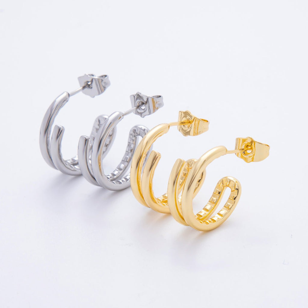 18K Gold Filled Double Band Edged C-Shaped Hoops Earrings in Gold & Silver | AJ209 AJ210