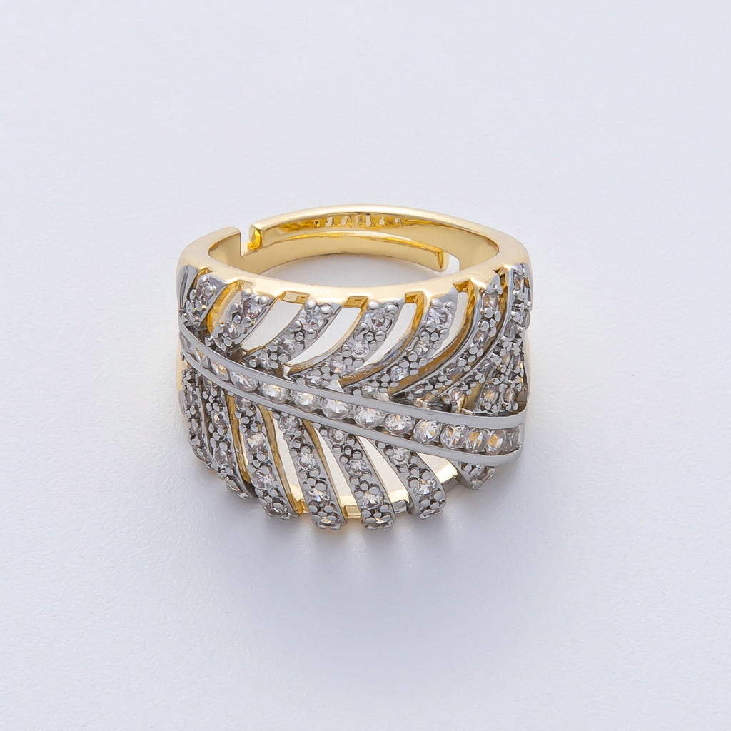 18K Gold Filled Mixed Metal Micro Paved CZ Palm Leaf Ring | O759