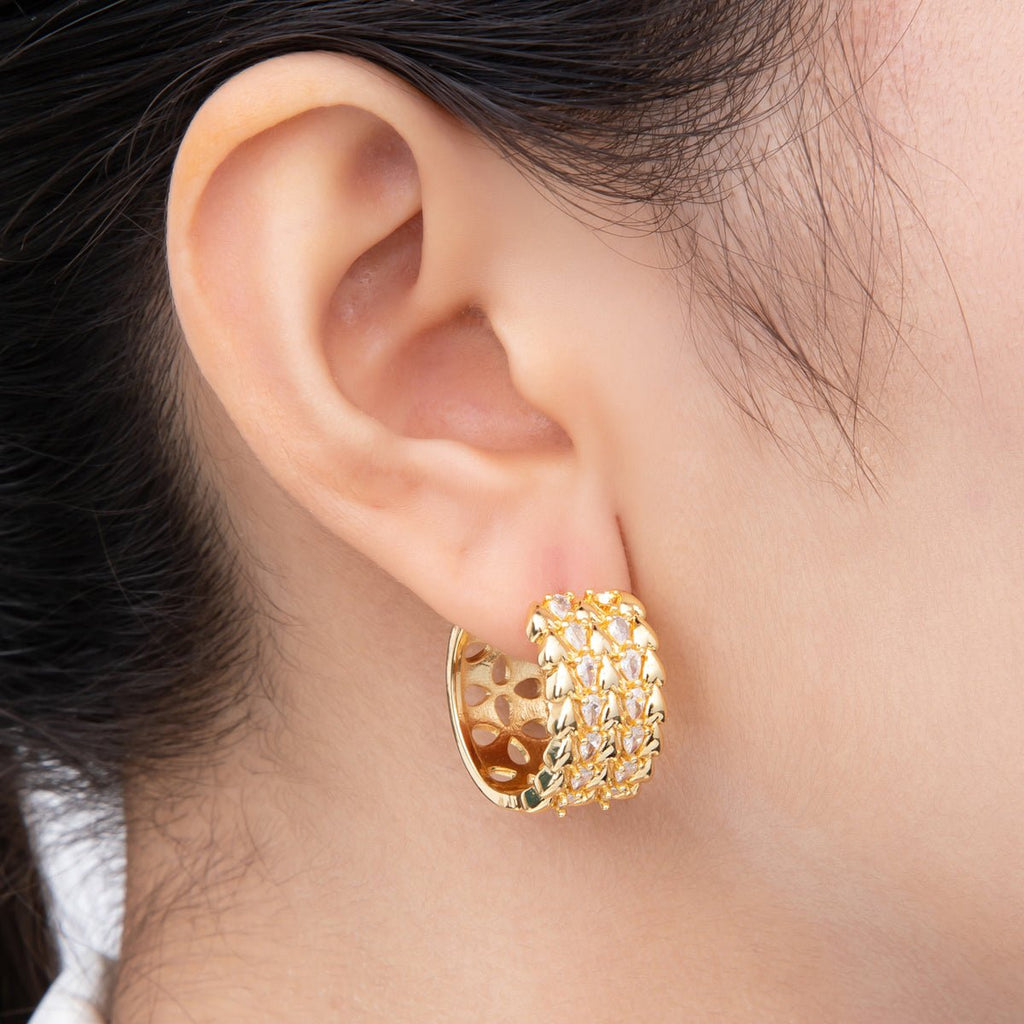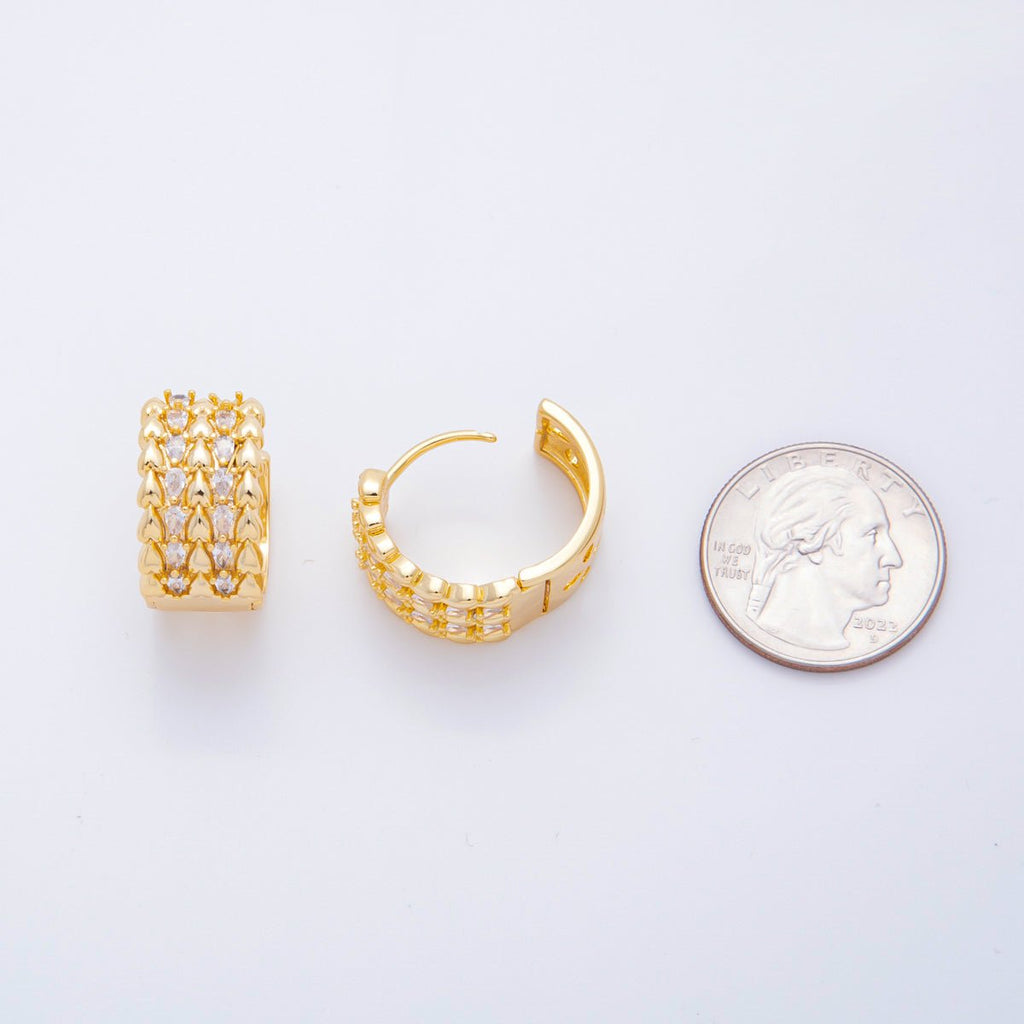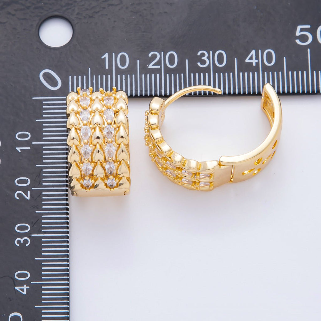18K Gold Filled Pear-Cut CZ Heartlines Row Hinged Hoops Earrings | AJ213