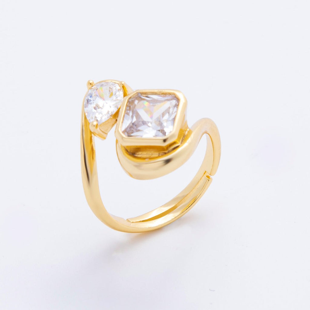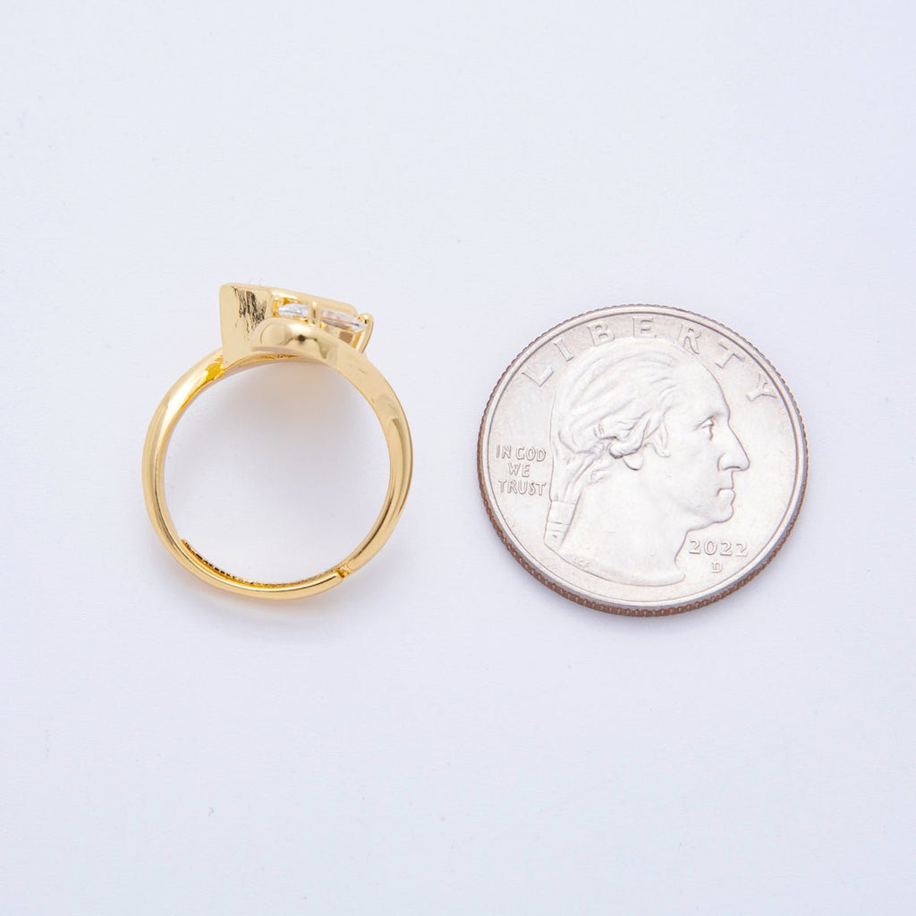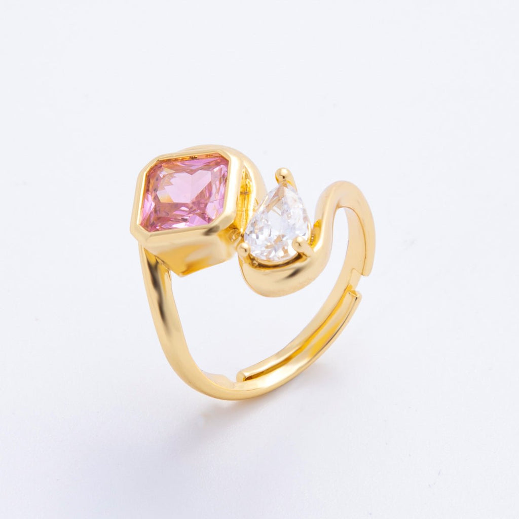 18K Gold Filled Clear, Pink CZ Square Teardrop Curved Adjustable Ring | O238