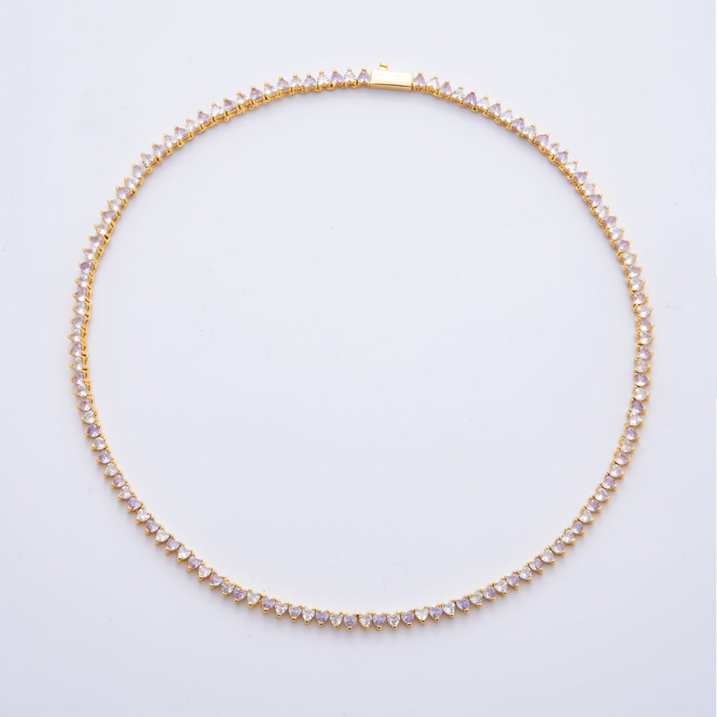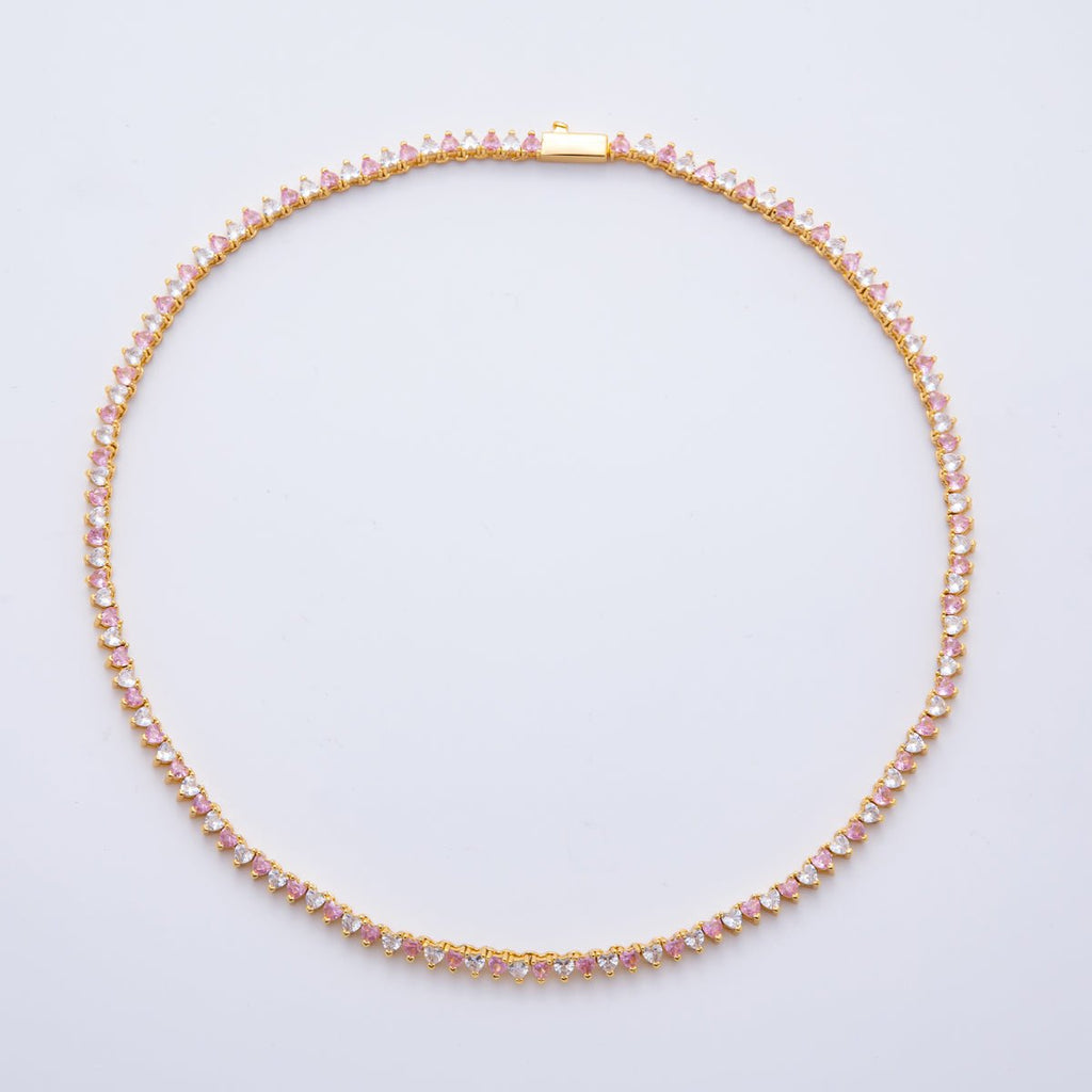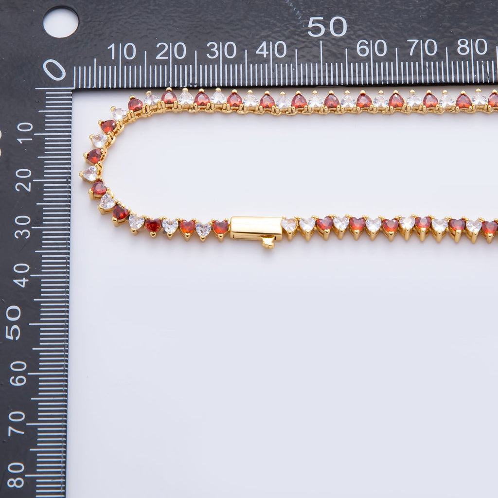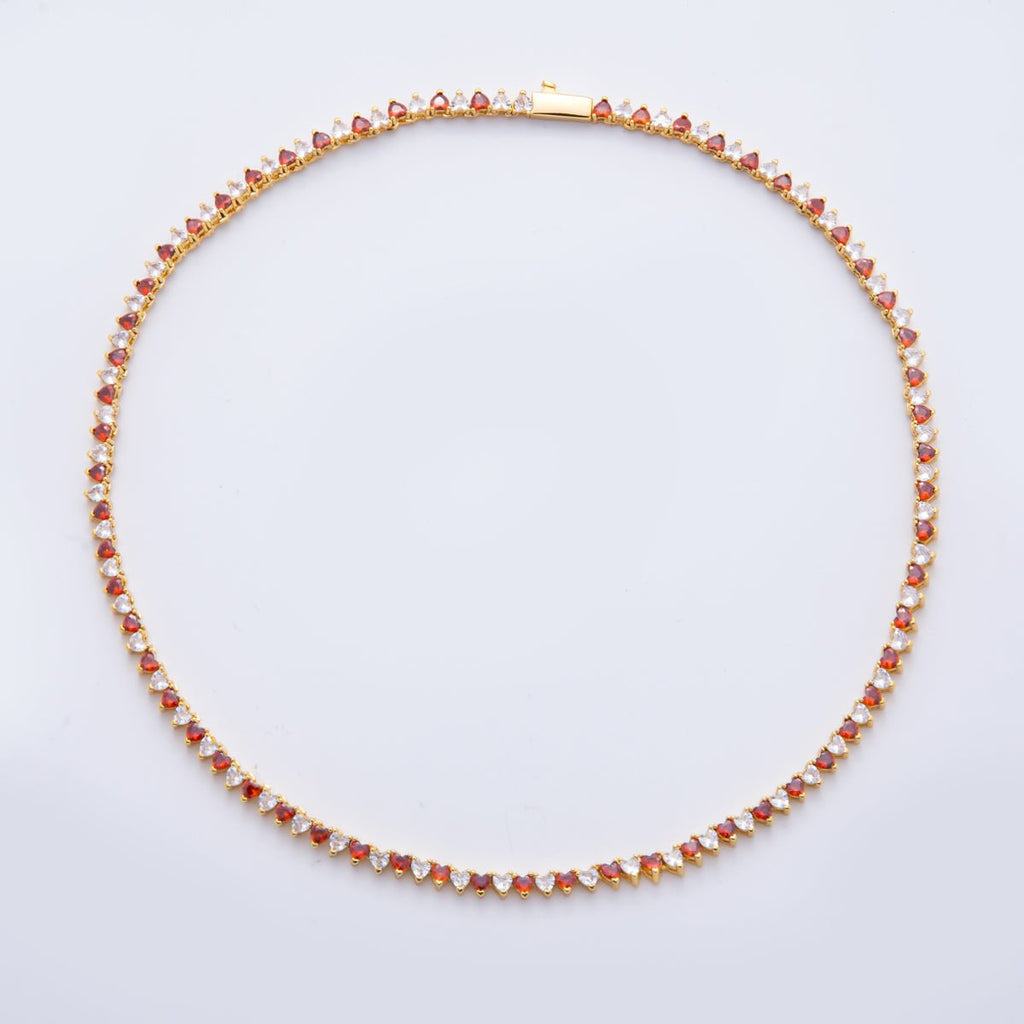 18K Gold Filled Pink, Green, Purple, Red Alternate Heart Tennis Chain 16 Inch Necklace | WA-2086 ~ WA-2235