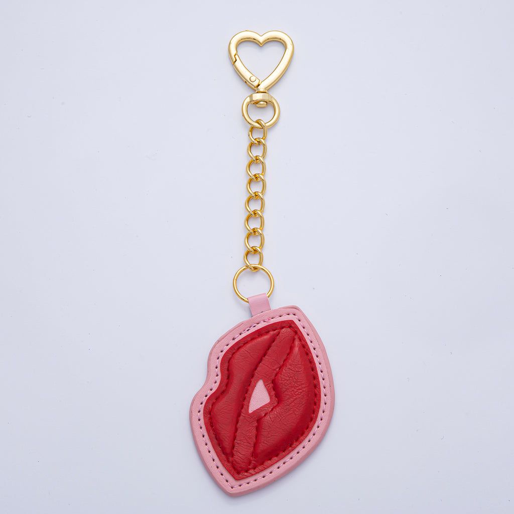 18K Gold Filled Red Lip Faux Leather Bag Charm Keychain Heart Push Gate Key Ring Accessories | WB-00235