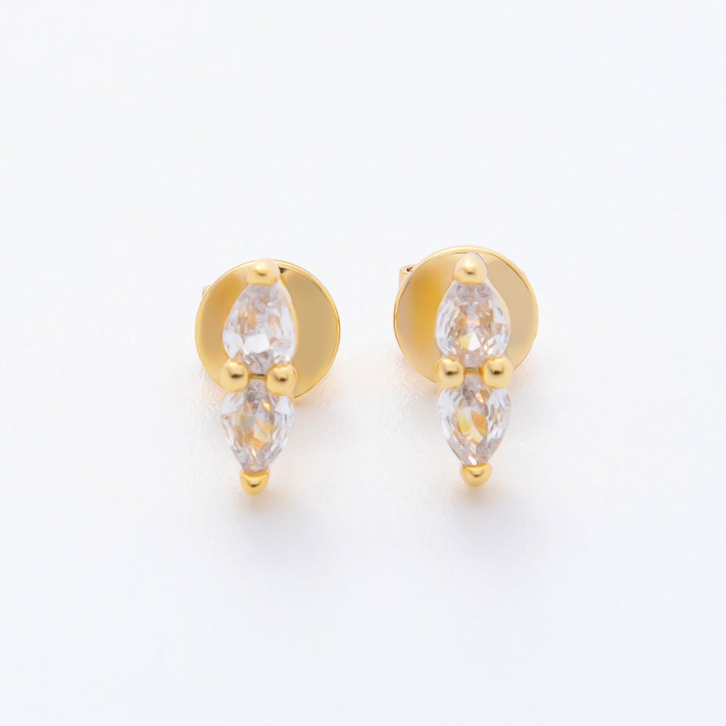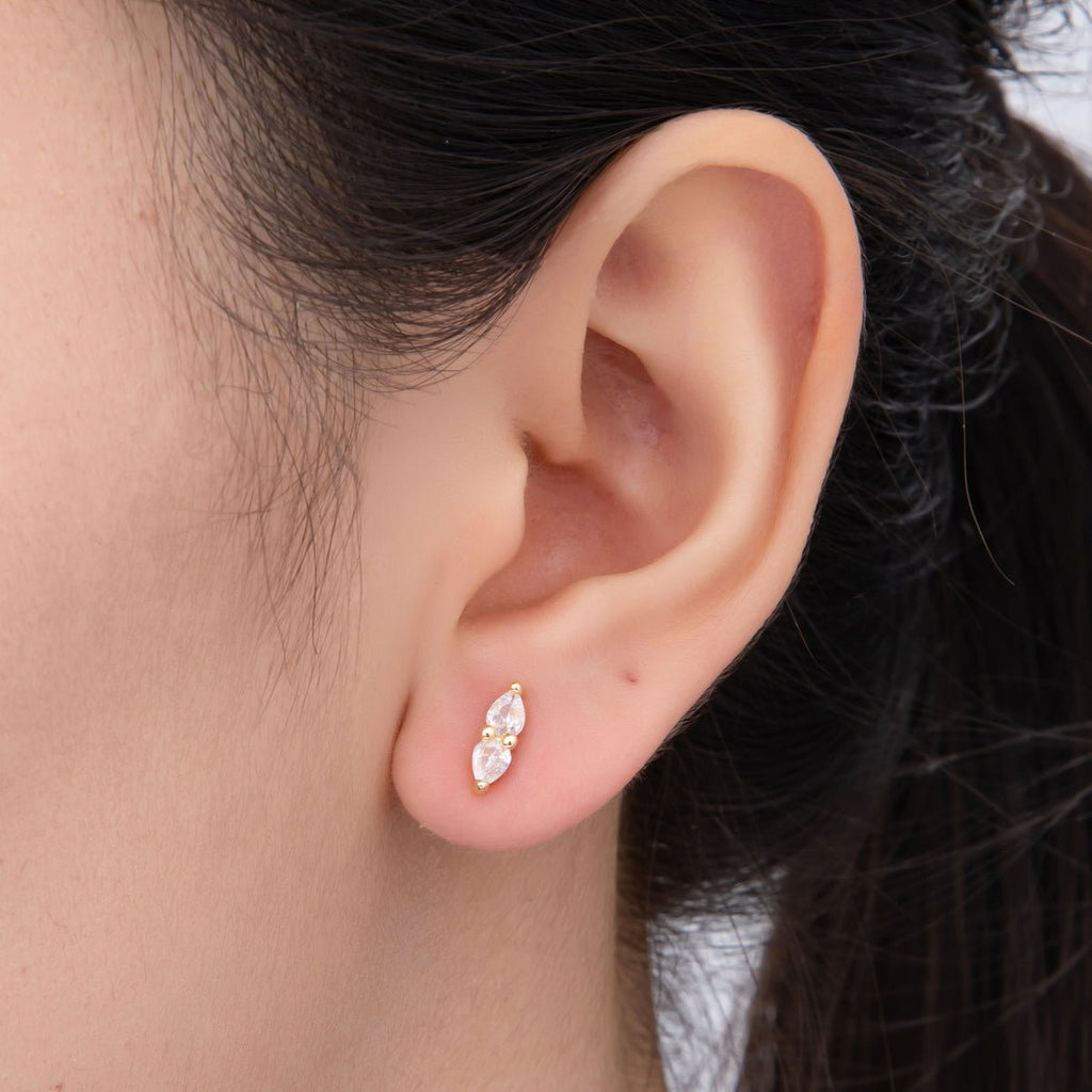 18K Gold Filled Twin Teardrop Linear CZ Dainty Studs Earrings | AJ203
